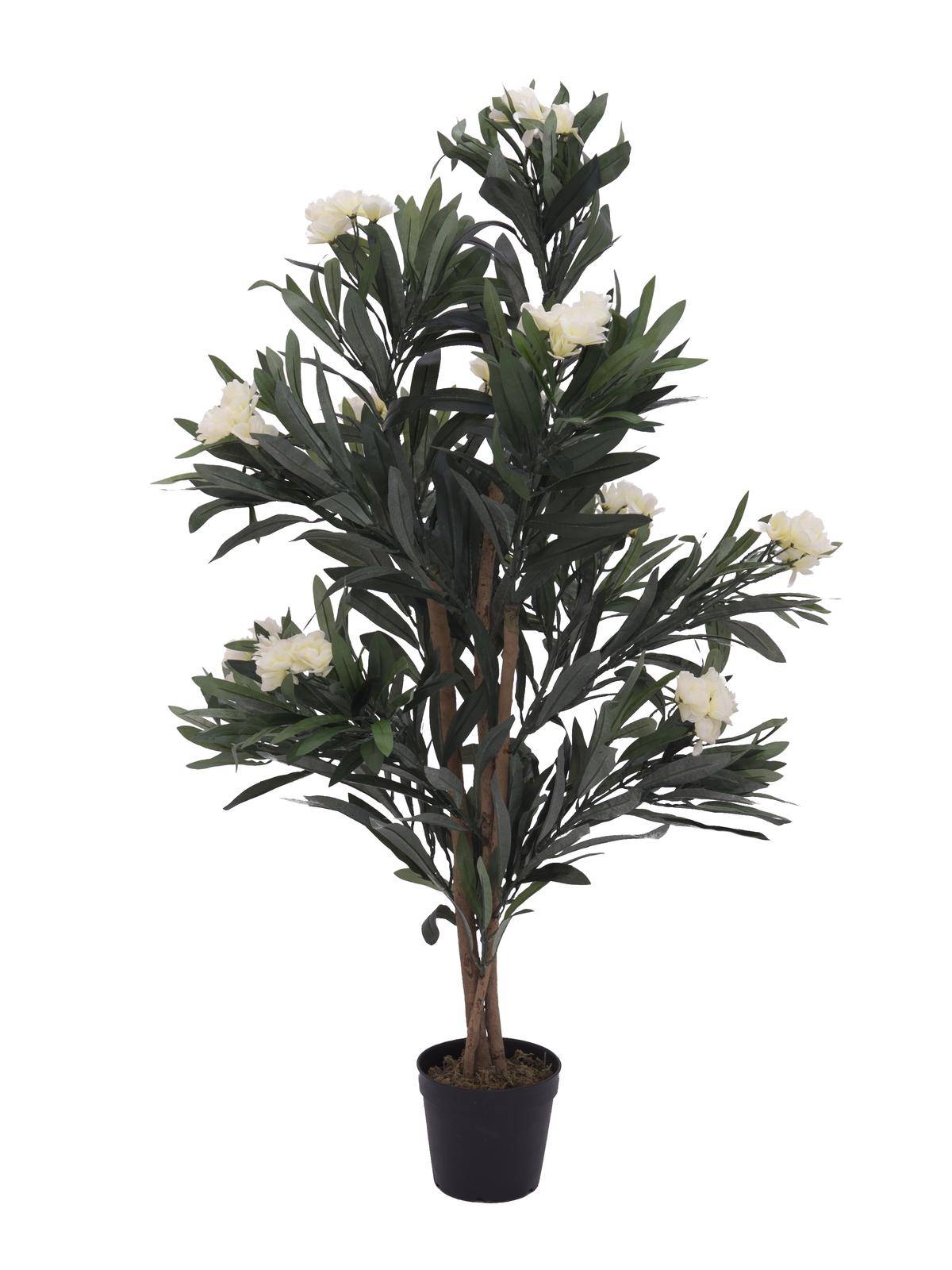 Oleandro artificiale MINOU, tronchi veri, fiorito, bianco, 120cm