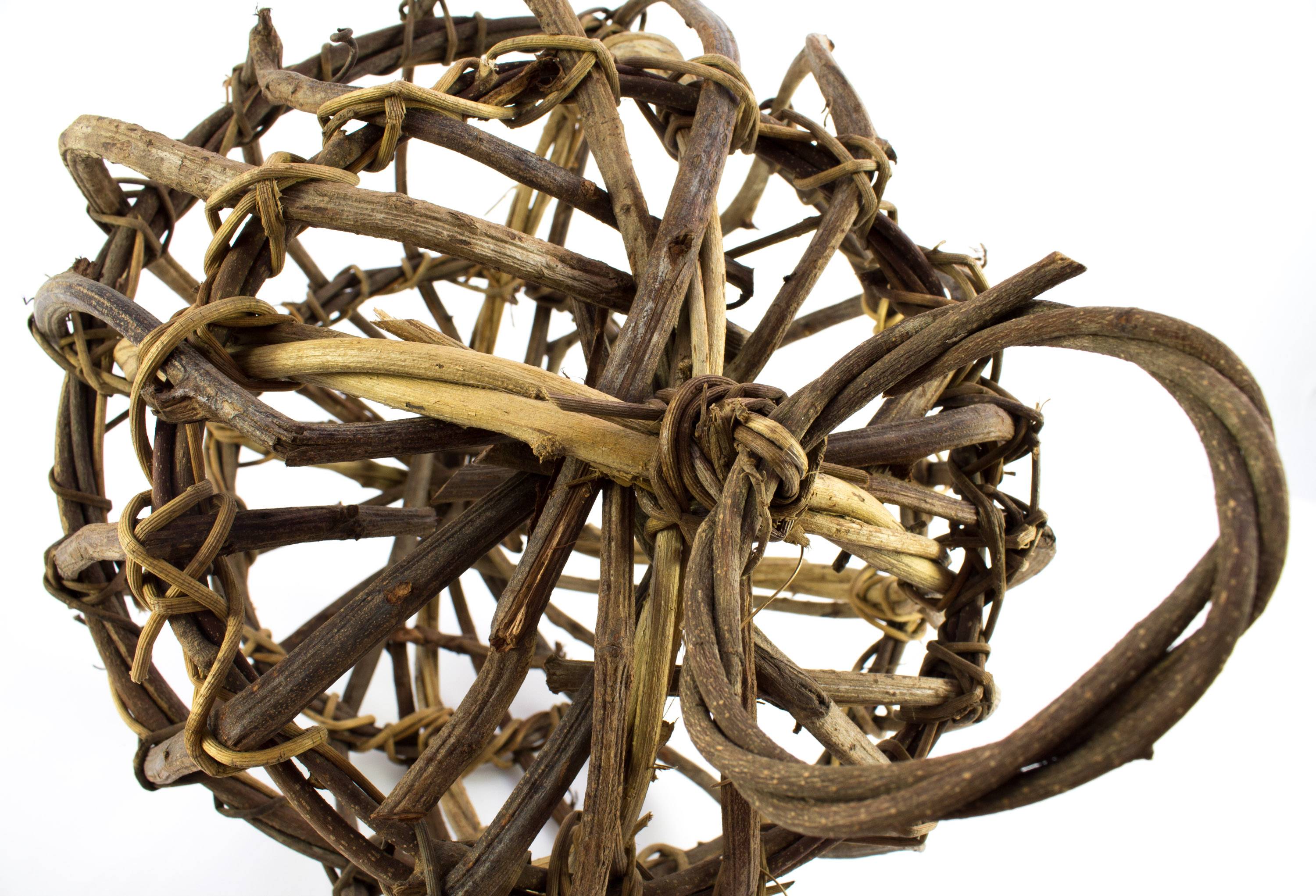 - i rami di legno sono strettamente legati con sottili tralci di vite, la superficie è stata lasciata naturale