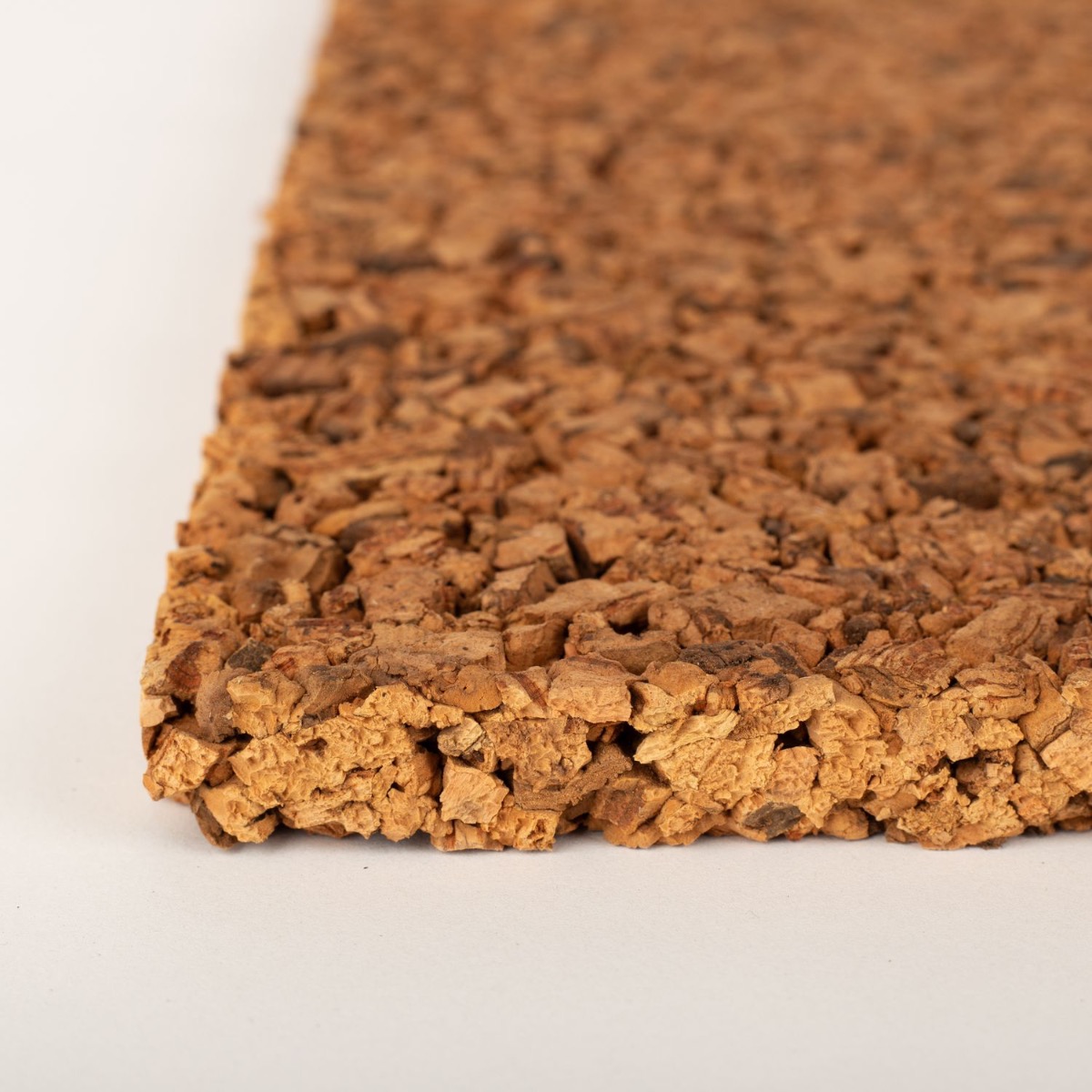 - Di colore marrone in sughero pressato, al granulato di sughero selezionato viene aggiunto un legante per formare il sughero pressato. L'agglutinante, un adesivo alimentare di alta qualità, agisce come un agente naturale, assicurandosi che le particelle di sughero aderiscano tra loro mantenendo le loro proprietà uniche.