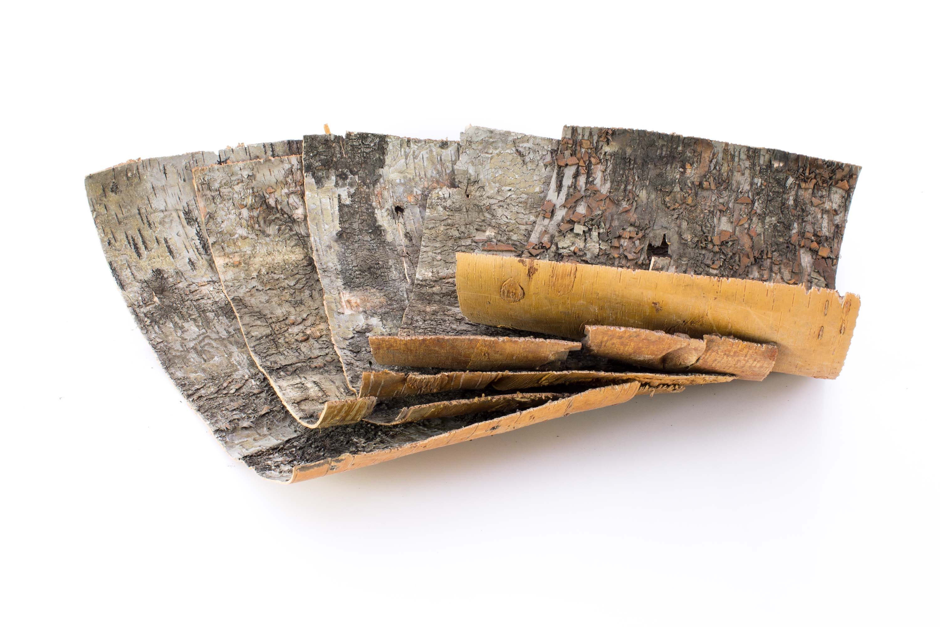 Pezzi sciolti essiccati di corteccia di betulla con dimensioni diverse da ca. 29 x 40 cm a 30 x 45 cm. Le piastre naturali con la superficie di corteccia beige-marrone agiscono come un fondamento naturale.