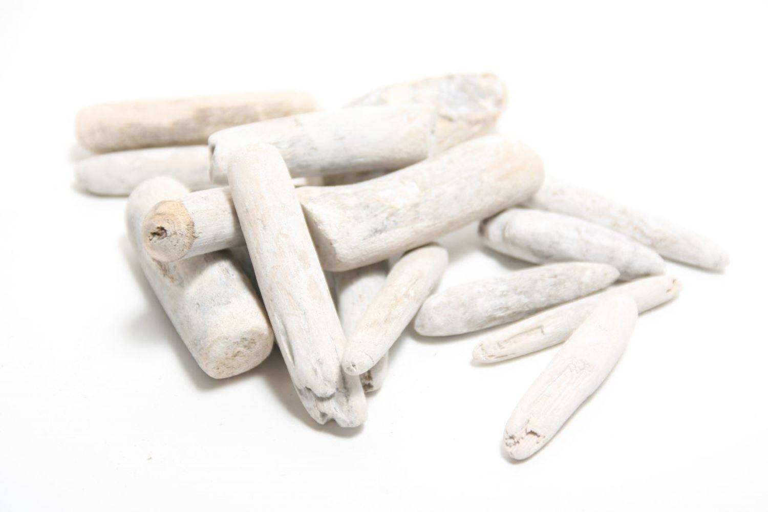 Pezzi di legno secco sciolto con varie dimensioni da 4 a 14 cm di lunghezza. Il legno è leggermente calcinato, rendendolo un elemento decorativo puristico e moderno.