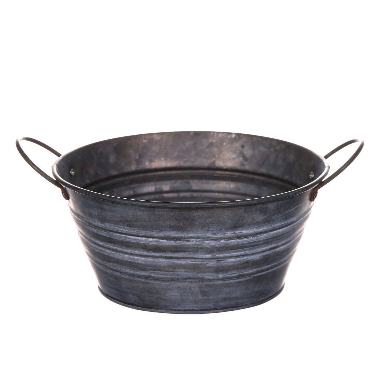 Piccola vaschetta in zinco KONNY con manici, grigio-bianco, 9cm, Ø18cm