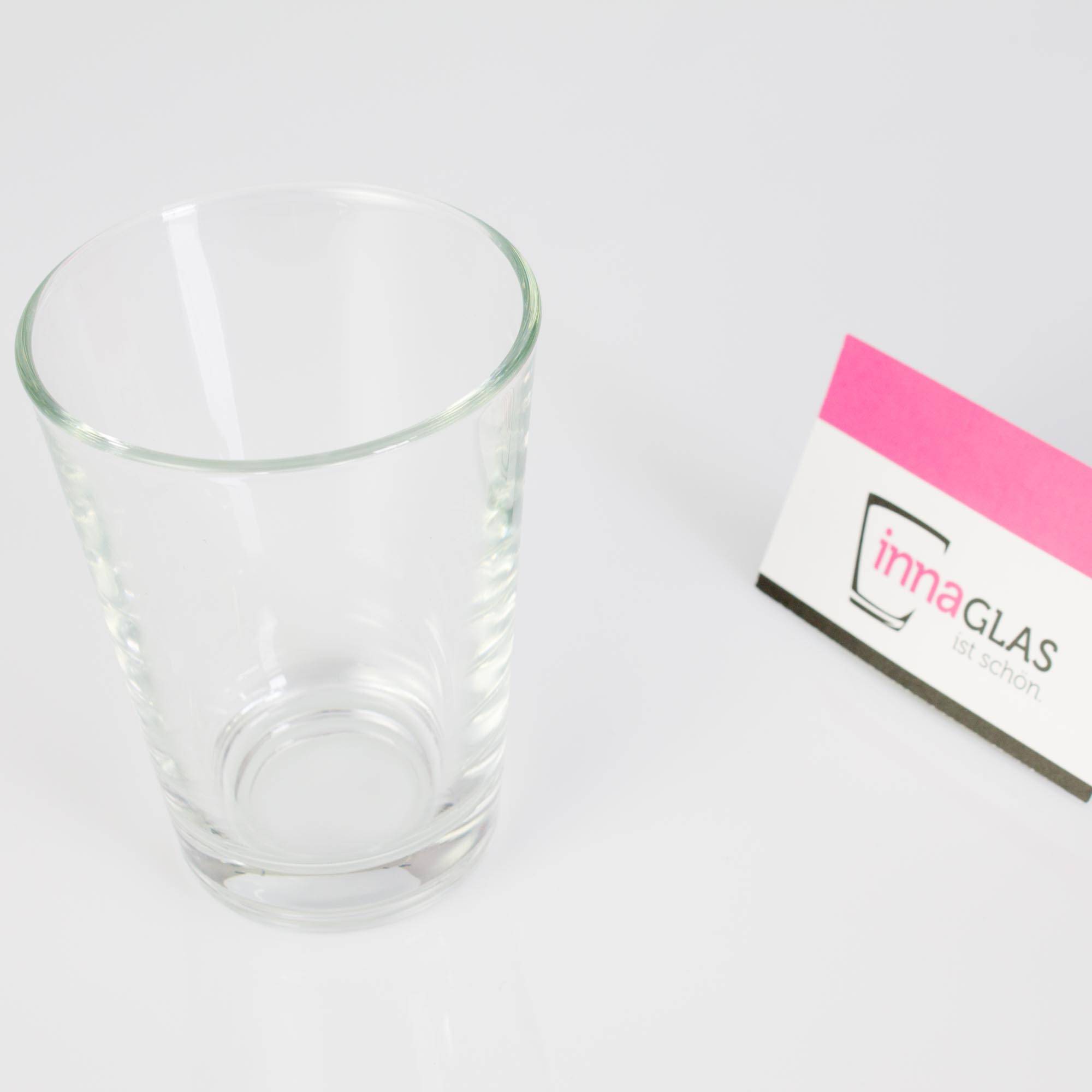 Piccolo portacandele ALEX con pareti spesse ca. 2mm, di INNA Glas. Il bicchiere di ca. 11cm di altezza puó contenere 200ml di acqua.