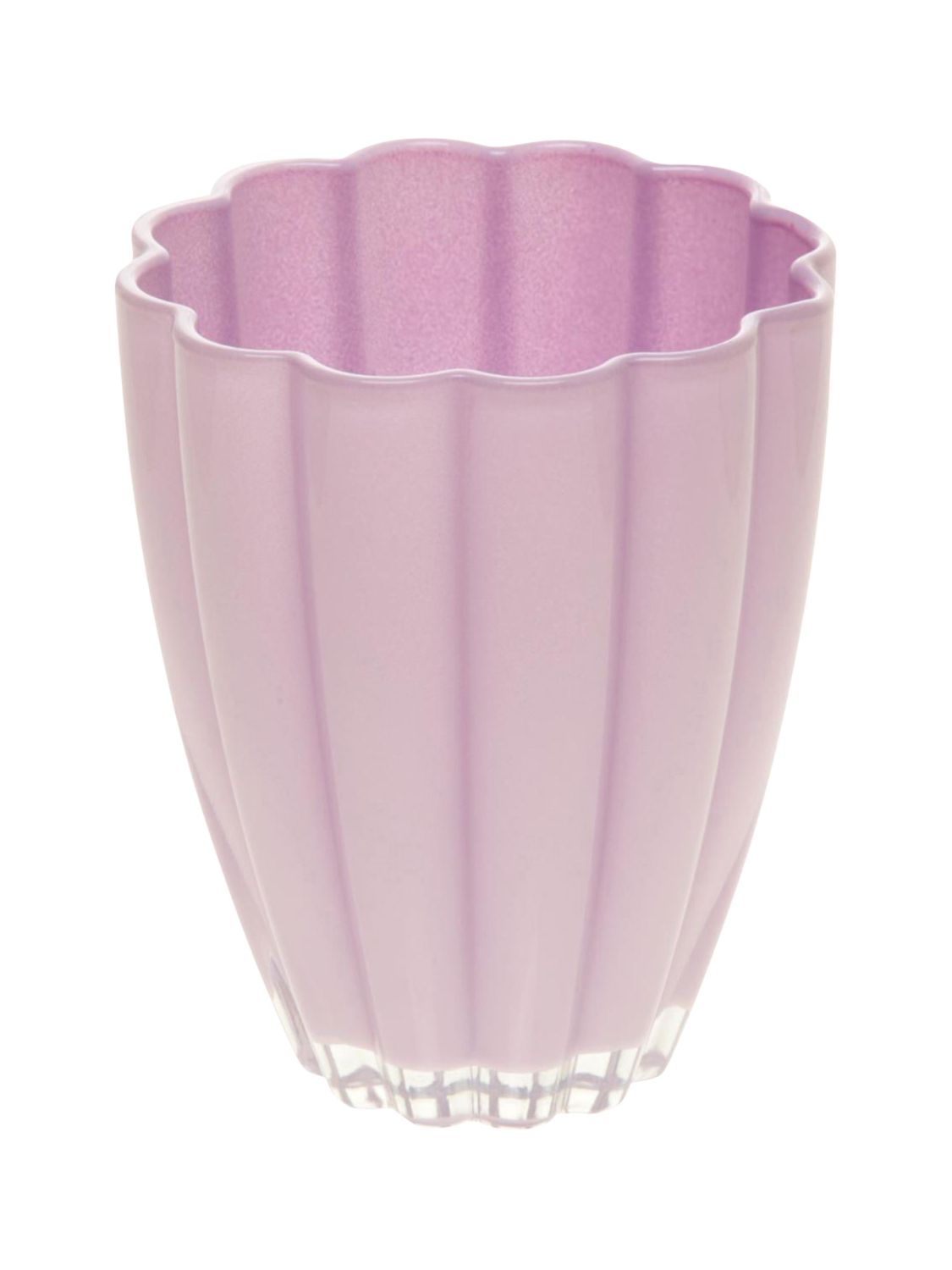 Piccolo vaso decorativo BEA di INNA Glas in vetro spesso 5 mm e di colore lilla. Questo grazioso vaso da tavolo dal design ondulato misura 17 cm in altezza ed ha un diametro superiore di 14 cm ed inferiore di 8 cm.