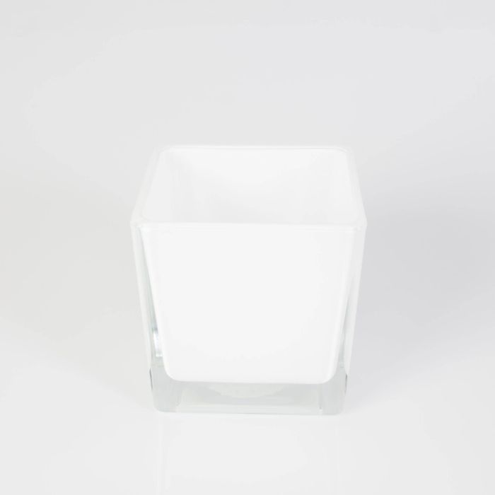 Portacandela cubico in vetro KIM EARTH, bianco, 10x10x10cm