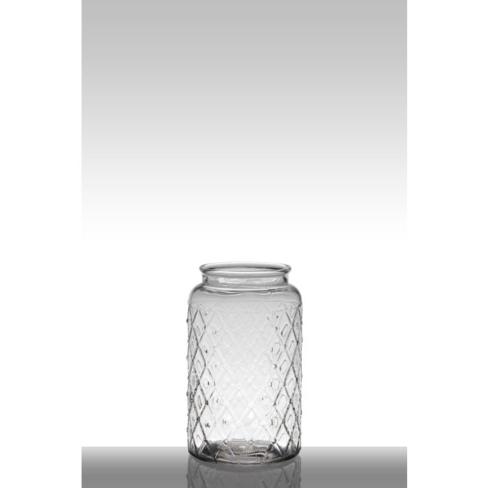 Portacandela da tavolo ROSIE con decorazione a rombi, cilindro/rotondo, trasparente, 26,5 cm, Ø16 cm