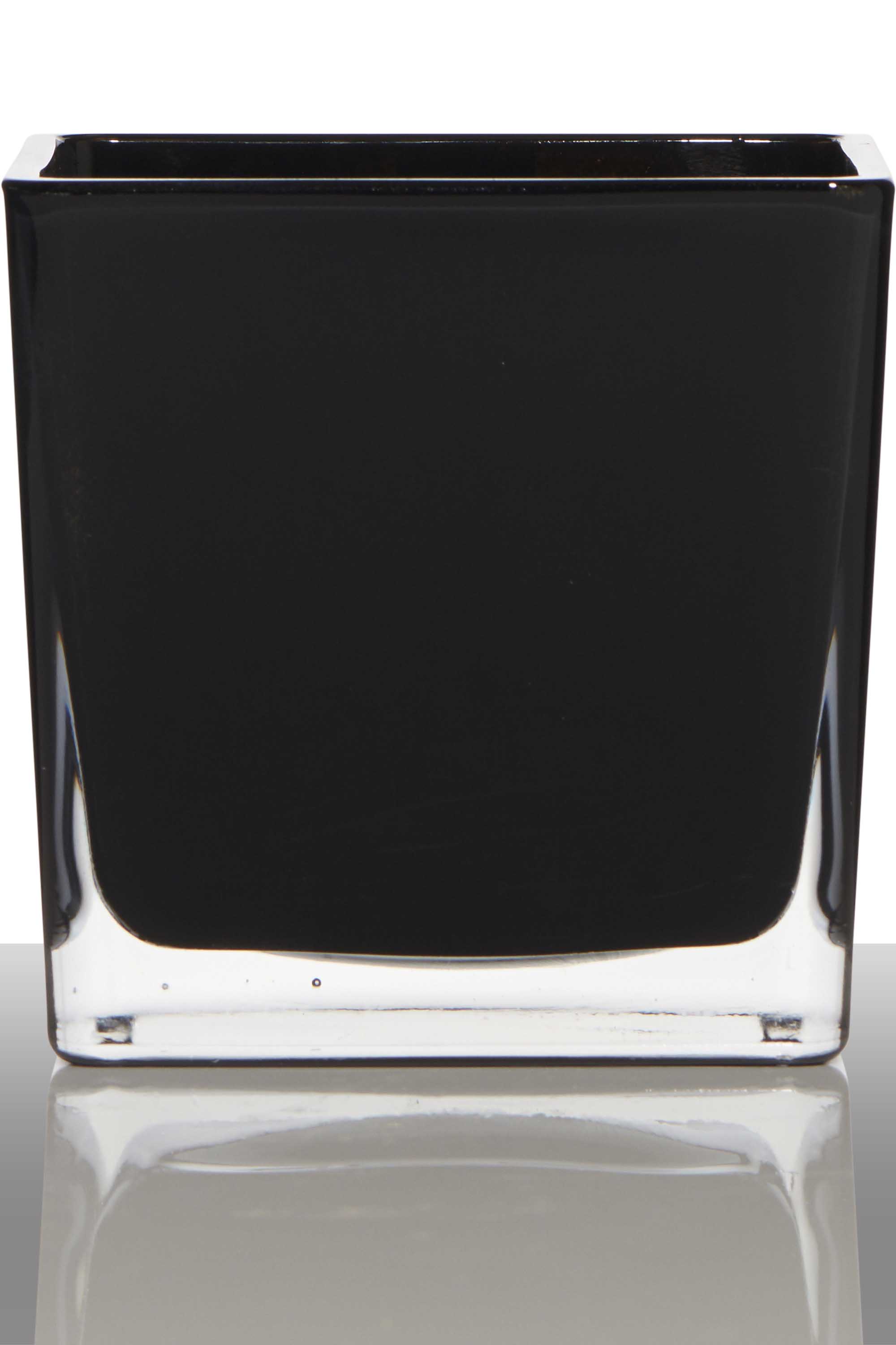 Il vetro per candele/portacandela KIM di colore nero con le dimensioni 8x8x8cm da INNA Glas offre spazio per un lumino da tè ed è ideale per le vostre idee di decorazione