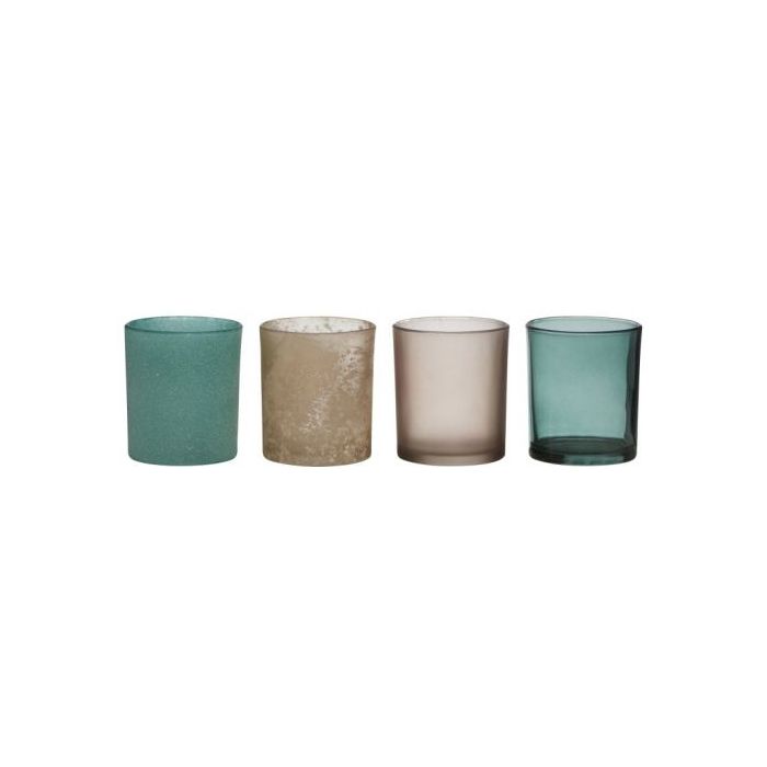 Portacandela LYLA in vetro, 4 pezzi, turchese-marrone, 9cm, Ø8cm