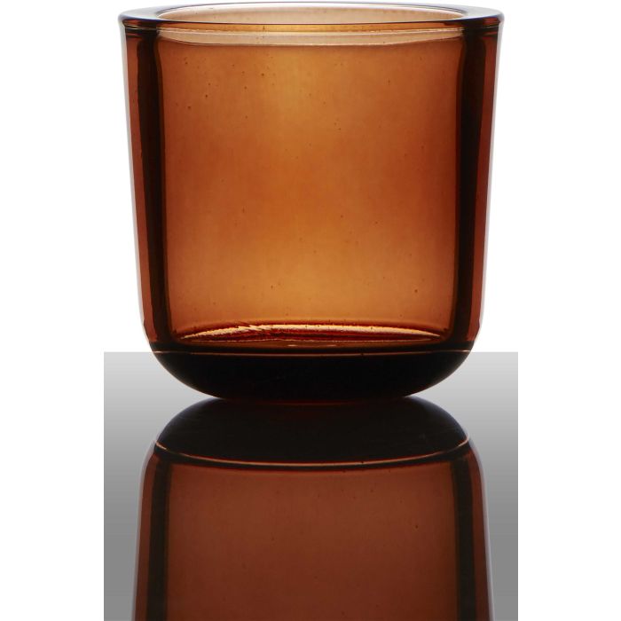 Il vetro per candele/portacandela NICK di colore arancione trasparente con le dimensioni 7,5cm; Ø7,5cm da INNA Glas offre spazio per un lumino da tè ed è ideale per le vostre idee di decorazione