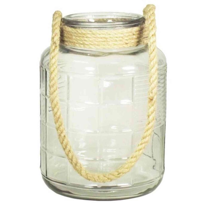 Portacandele in vetro ILONA con cordoncino-manico, trasparente, 28cm, Ø17cm