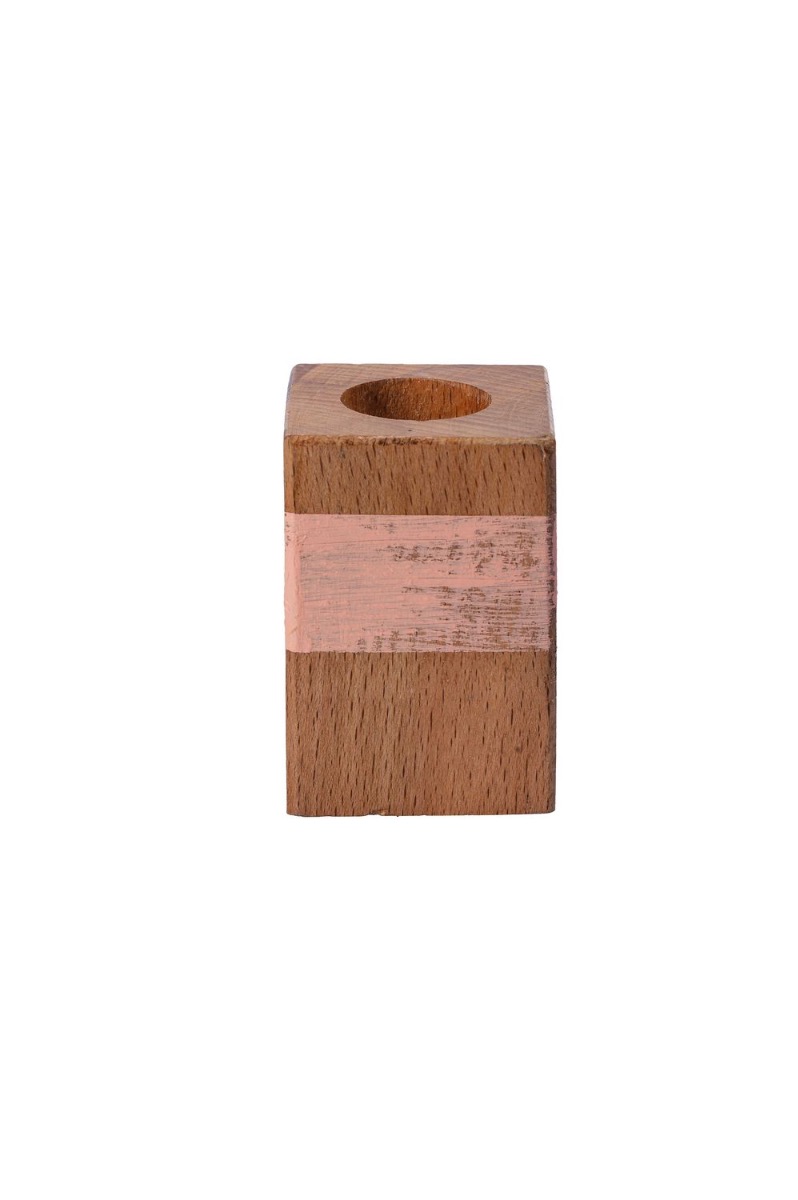 Portalumino rettangolare in legno KARLINA per candele affusolate, naturale-salmone, 4x4x6cm