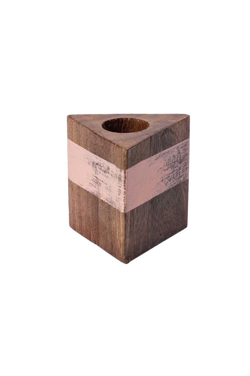 Portalumino triangolare in legno KARLINA per candele affusolate, naturale-salmone, 6x6x6cm