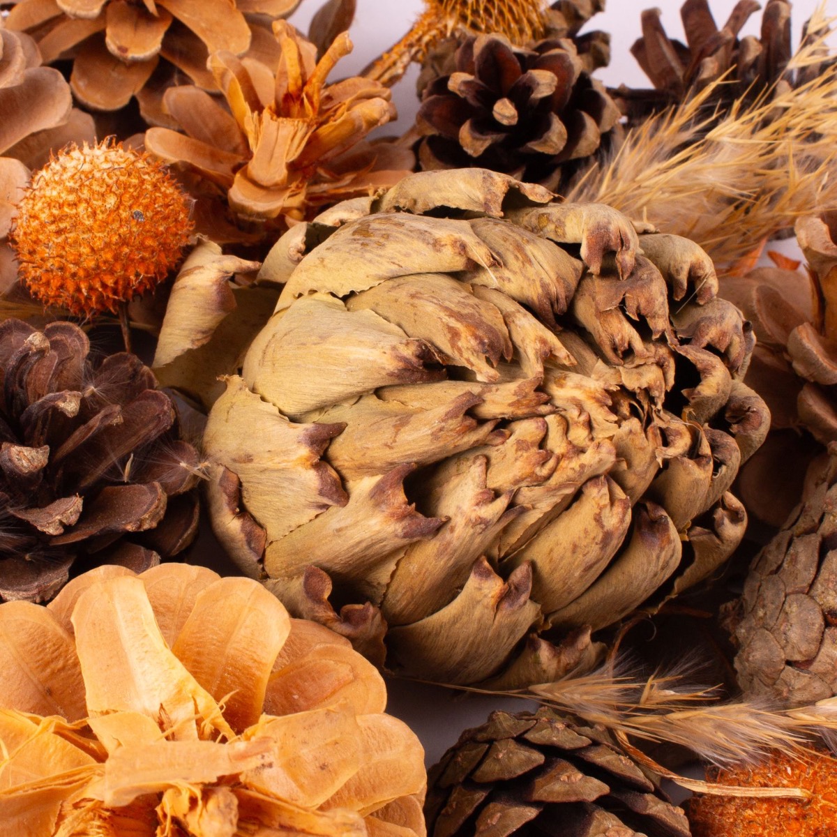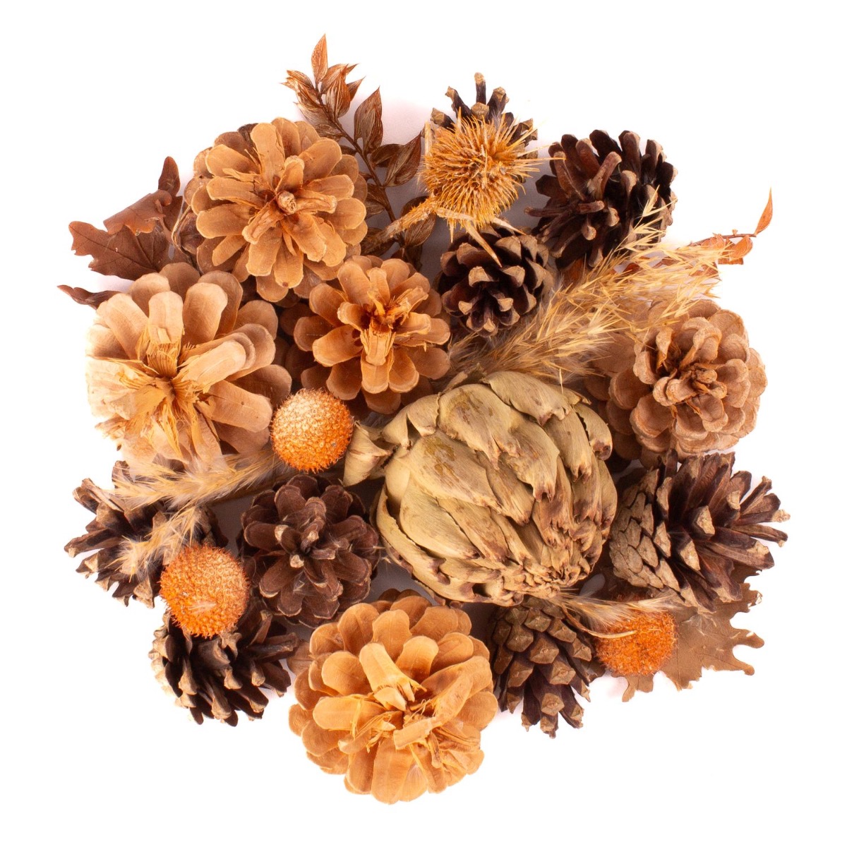 Potpourri autunnale YIDU, pigne di abete, rami secchi, marrone-arancione-verde, 250g