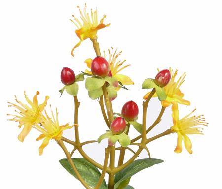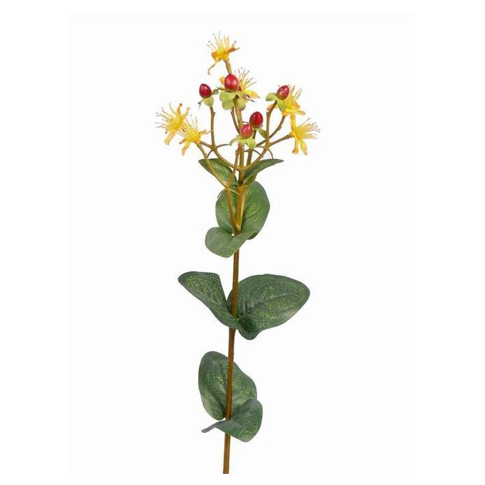 Ramo di iperico artificiale ARMIE, fioritura, frutti, giallo-rosso, 65cm