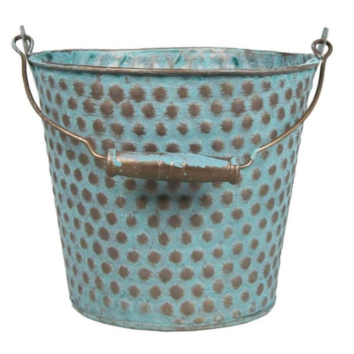 Secchio di zinco TRUMAN con manico, con motivo, blu-marrone, 14cm, Ø16,5cm