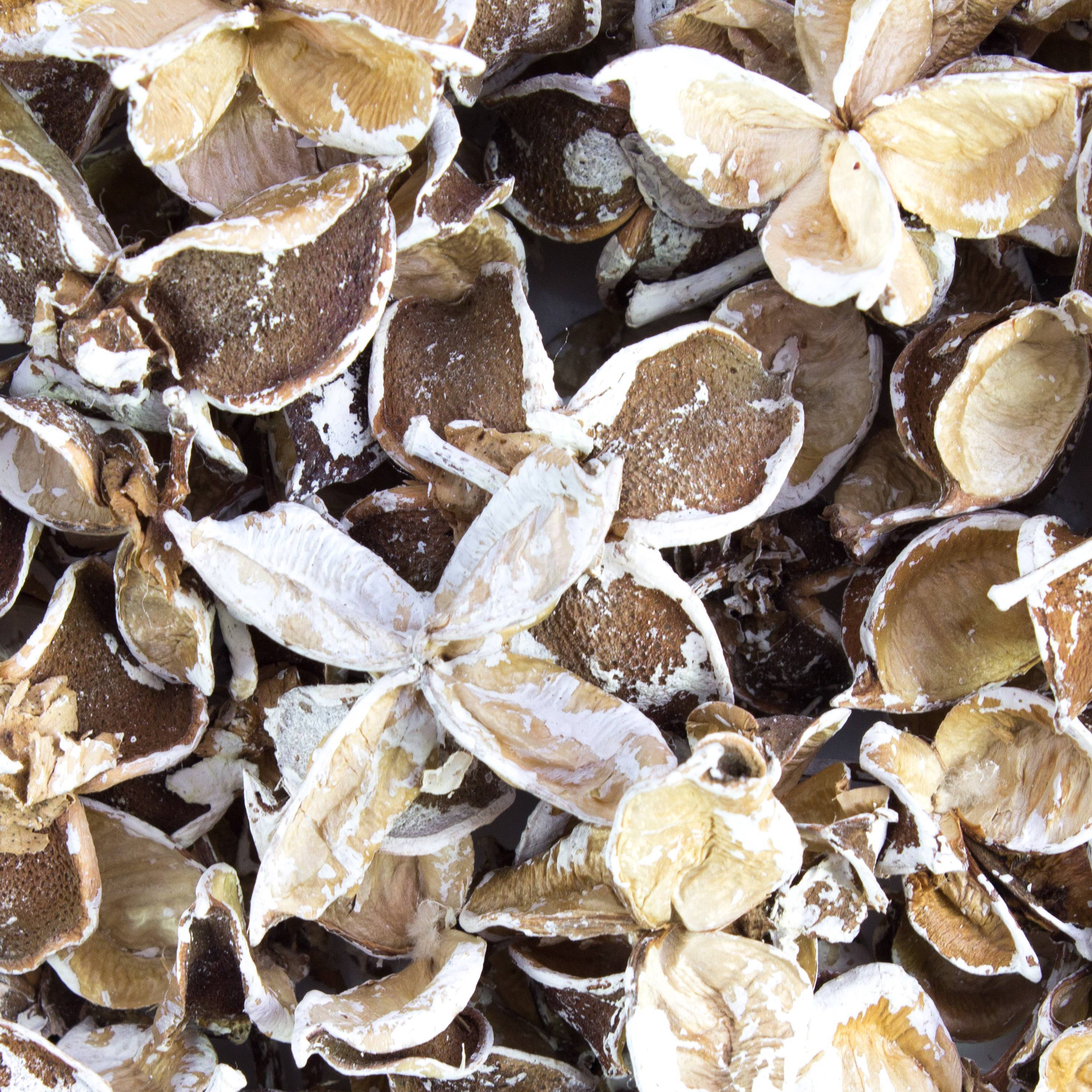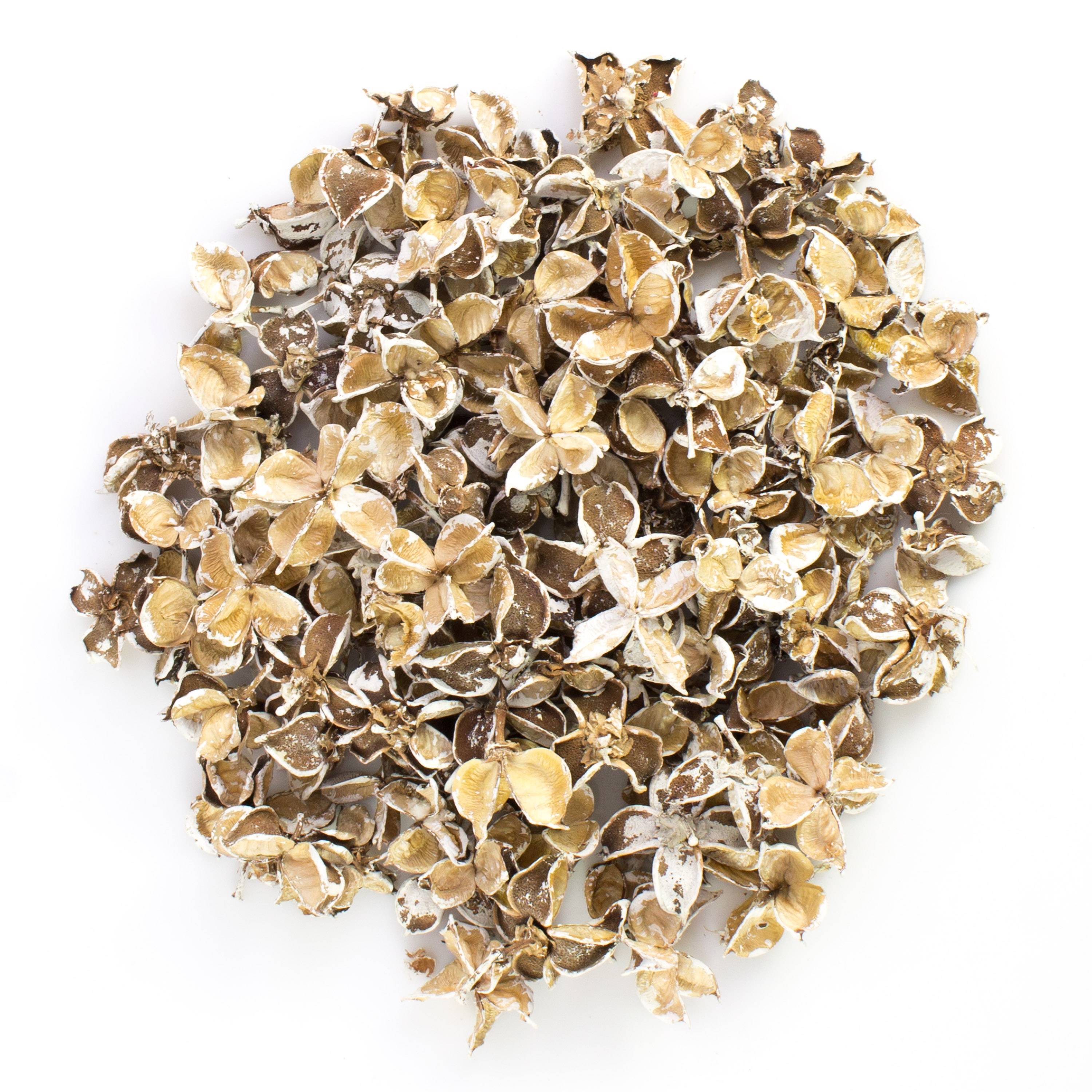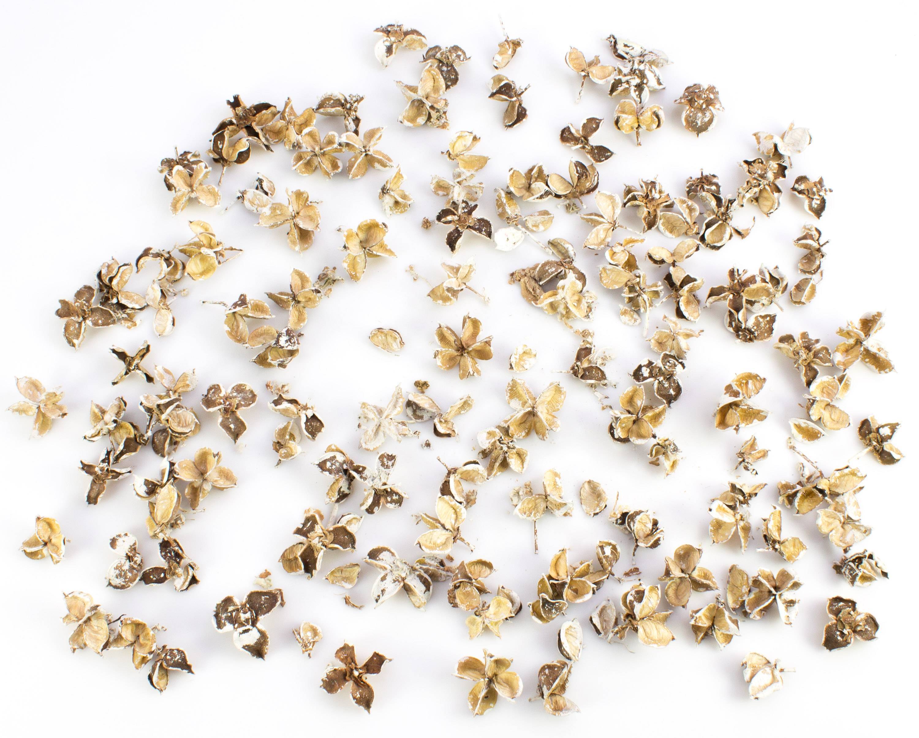 Baccelli di frutta secca di cotone sciolto con varie dimensioni di ca. 4 x 6 cm. I baccelli naturali con la superficie beige-marrone e i bordi dei baccelli bianchi imbiancati fungono da decorazione di base naturale.