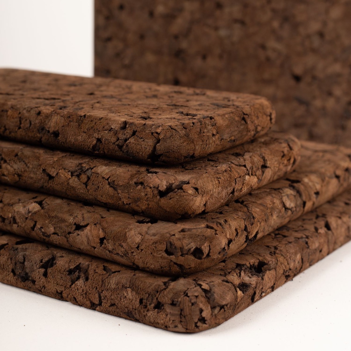 - Di colore scuro in sughero pressato, al granulato di sughero selezionato viene aggiunto un legante per formare il sughero pressato. L'agglutinante, un adesivo alimentare di alta qualità, agisce come un agente naturale, assicurandosi che le particelle di sughero aderiscano tra loro mantenendo le loro proprietà uniche.