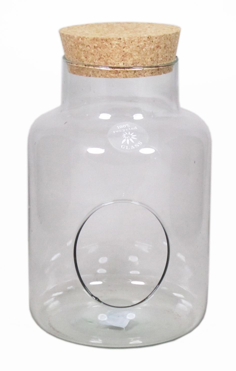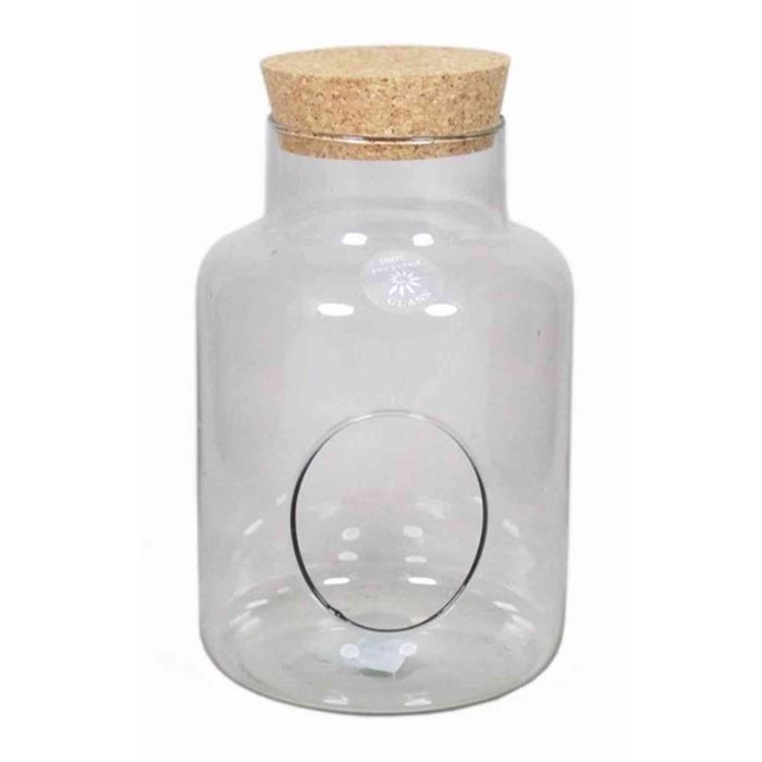 Terrario in vetro DONELL, coperchio di sughero, apertura laterale, cilindro/rotondo, trasparente, 25cm, Ø10,5cm/Ø17cm