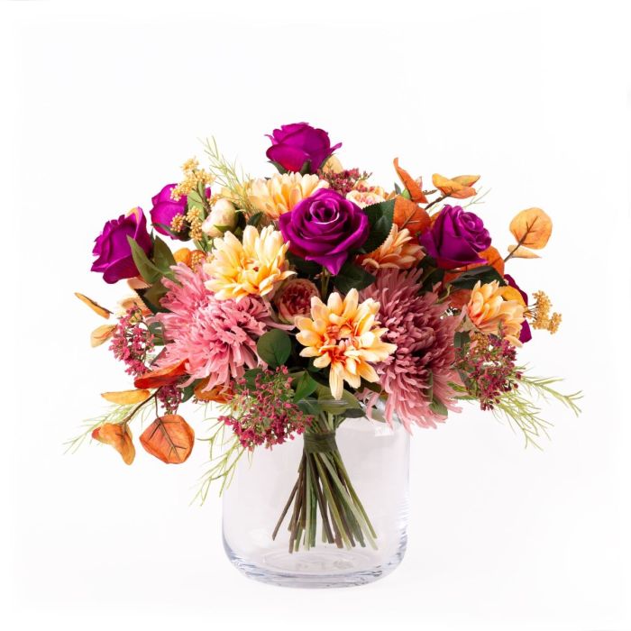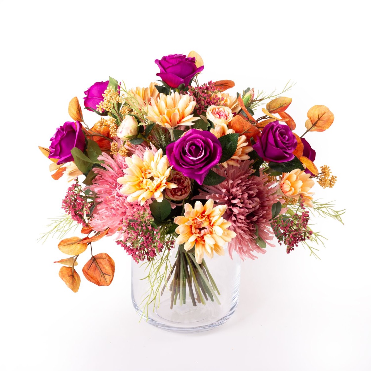 Udos Choice: Bouquet di fine estate artificiali CIRILLA, rosa-viola-arancione, 45cm, Ø60cm