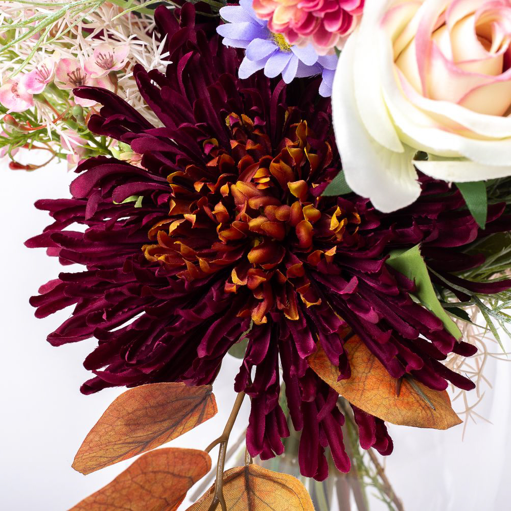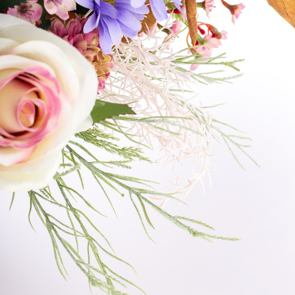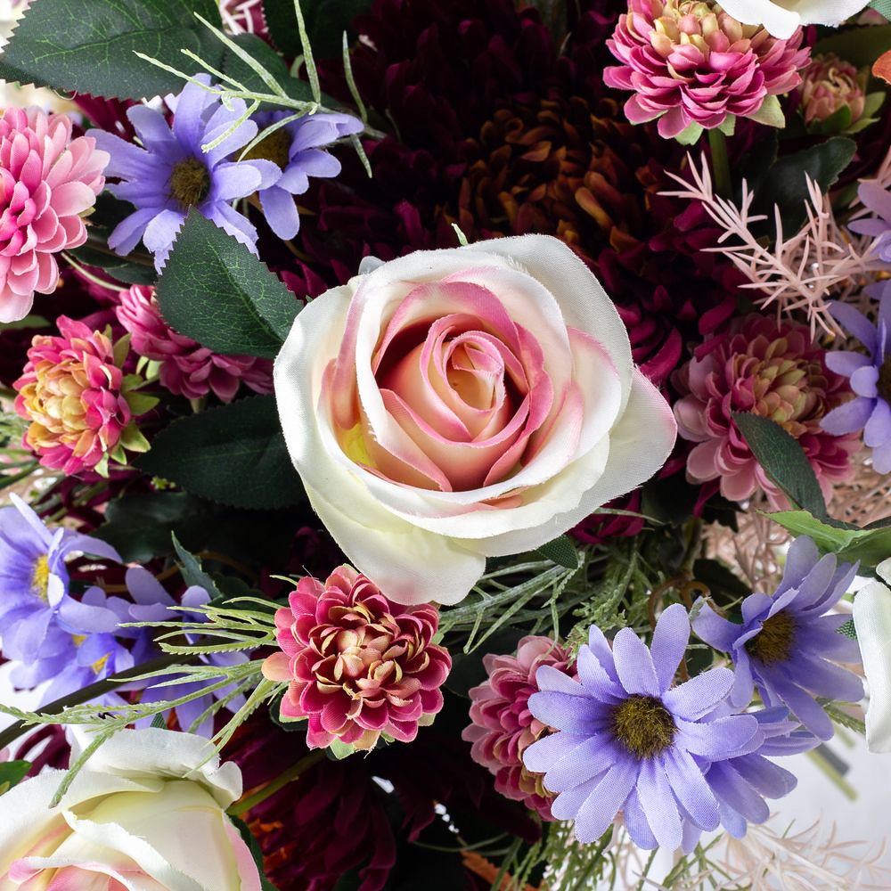Udos Choice: Bouquet di fine estate artificiali FRINGILLA, crema-viola-rosa, 50cm, Ø55cm