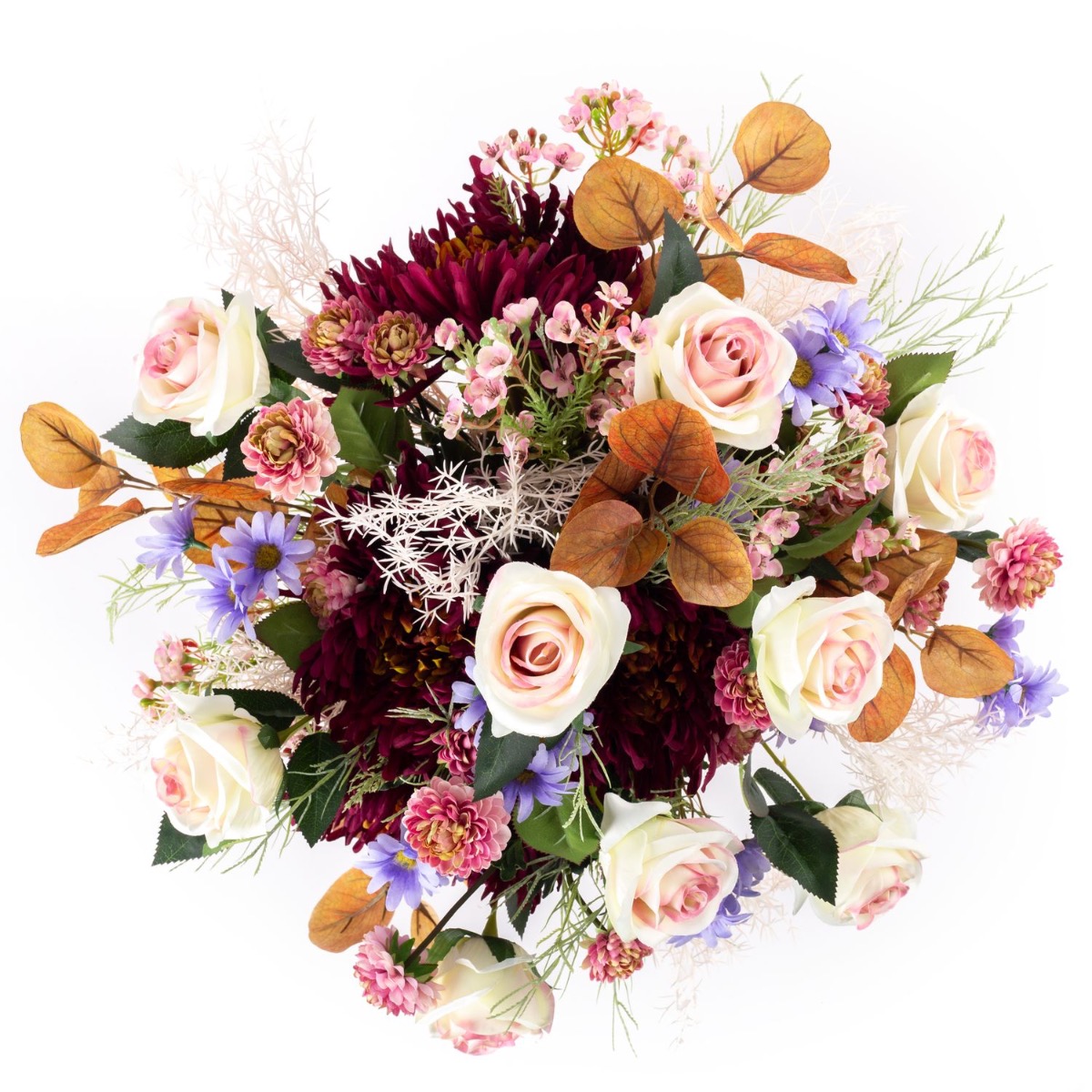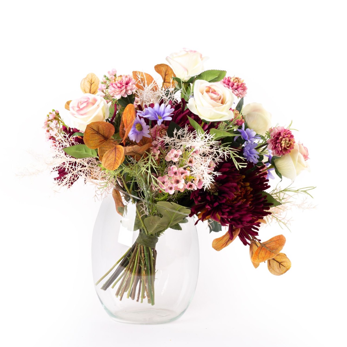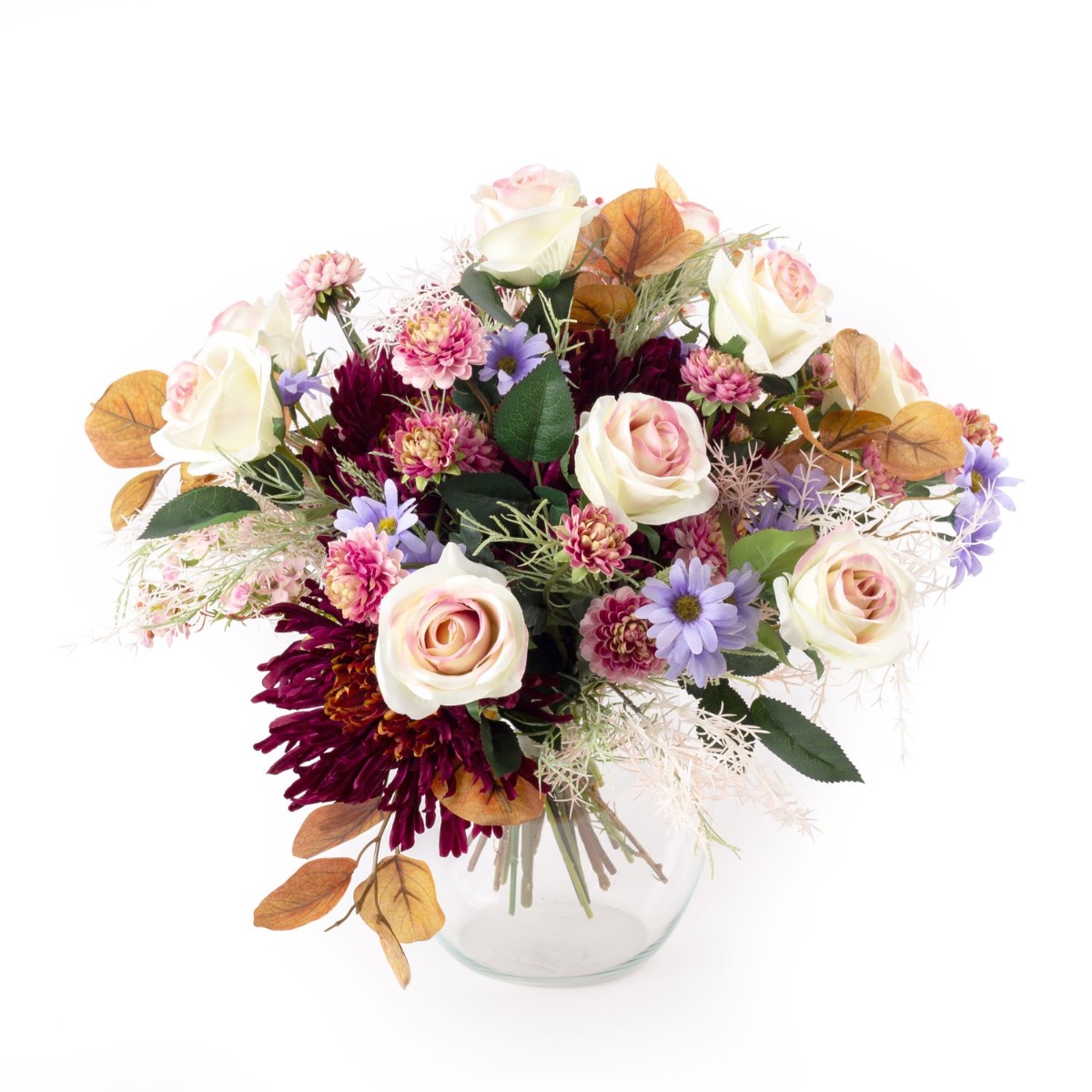 Udos Choice: Bouquet di fine estate artificiali FRINGILLA, crema-viola-rosa, 50cm, Ø55cm