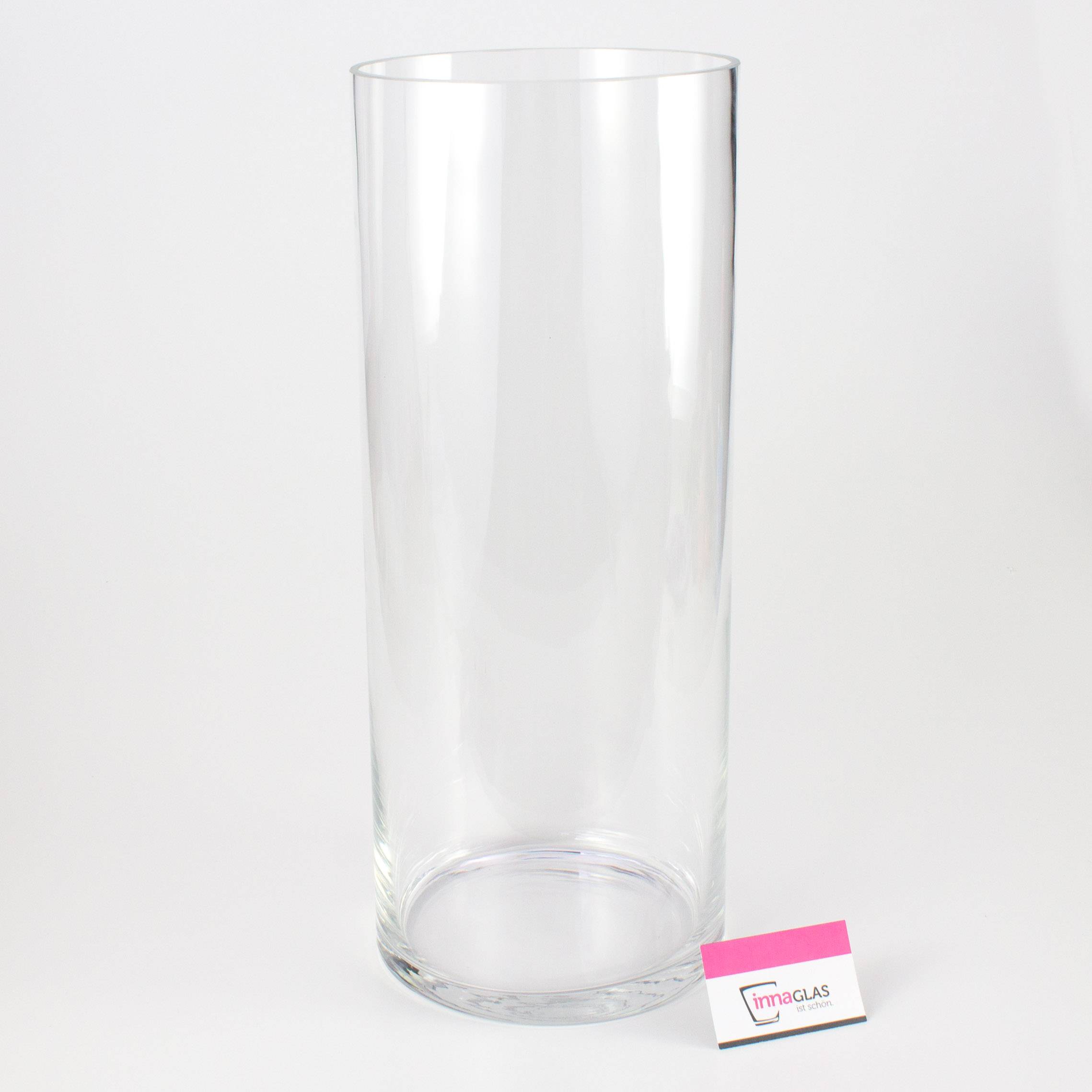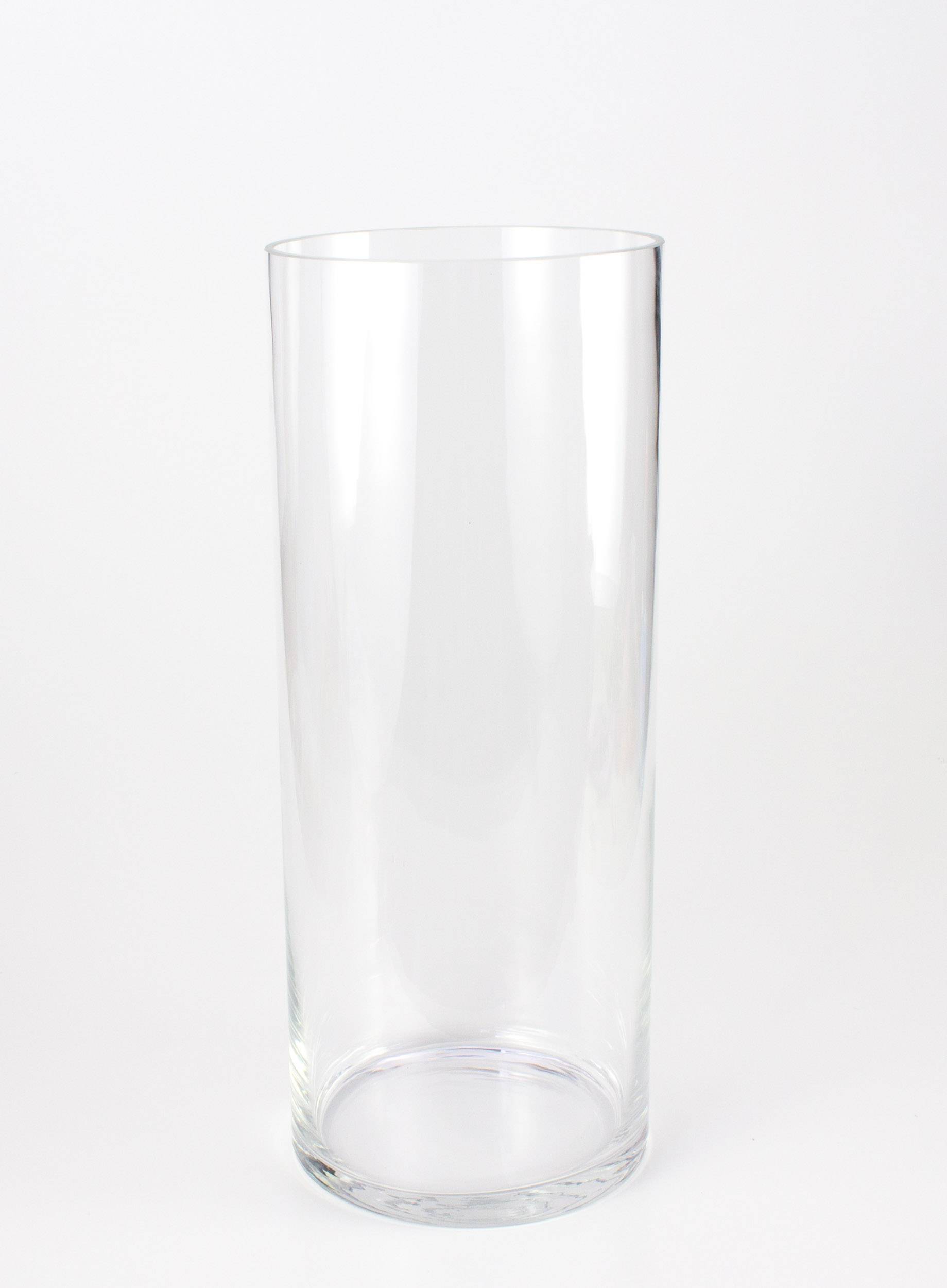 Vaso SANSA AIR di forma cilindrica in vetro trasparente di INNA Glas. Questo grazioso vaso per fiori misura ca. 50 cm in altezza ed ha un diametro esterno, nella parte superiore, di ca. 20 cm.