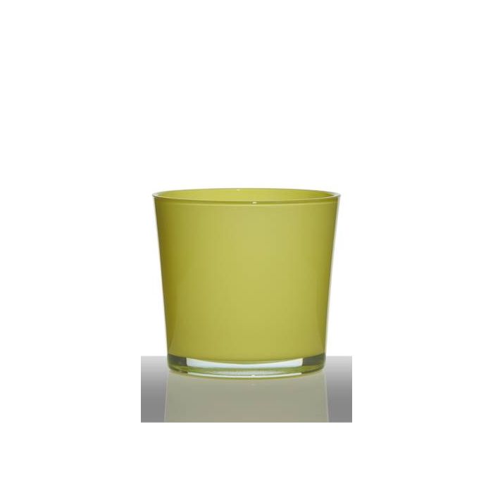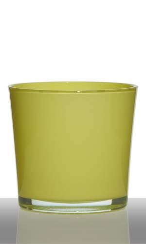 Ilvaso da piante/piccola fioriera ALENA di colore giallo-verde con le dimensioni 16cm; Ø17cm da INNA Glas è eccellente per piante da interno, piante in vaso o composizioni floreali.