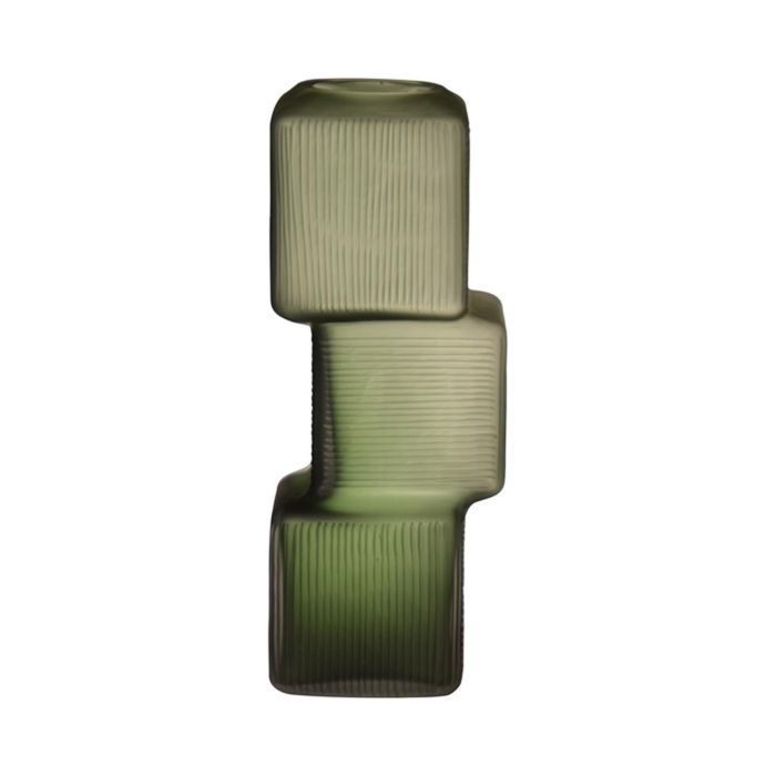 Vaso da fiori singoli RAELYN, vetro, ottica tetris, verde, 37cm, Ø14,5cm