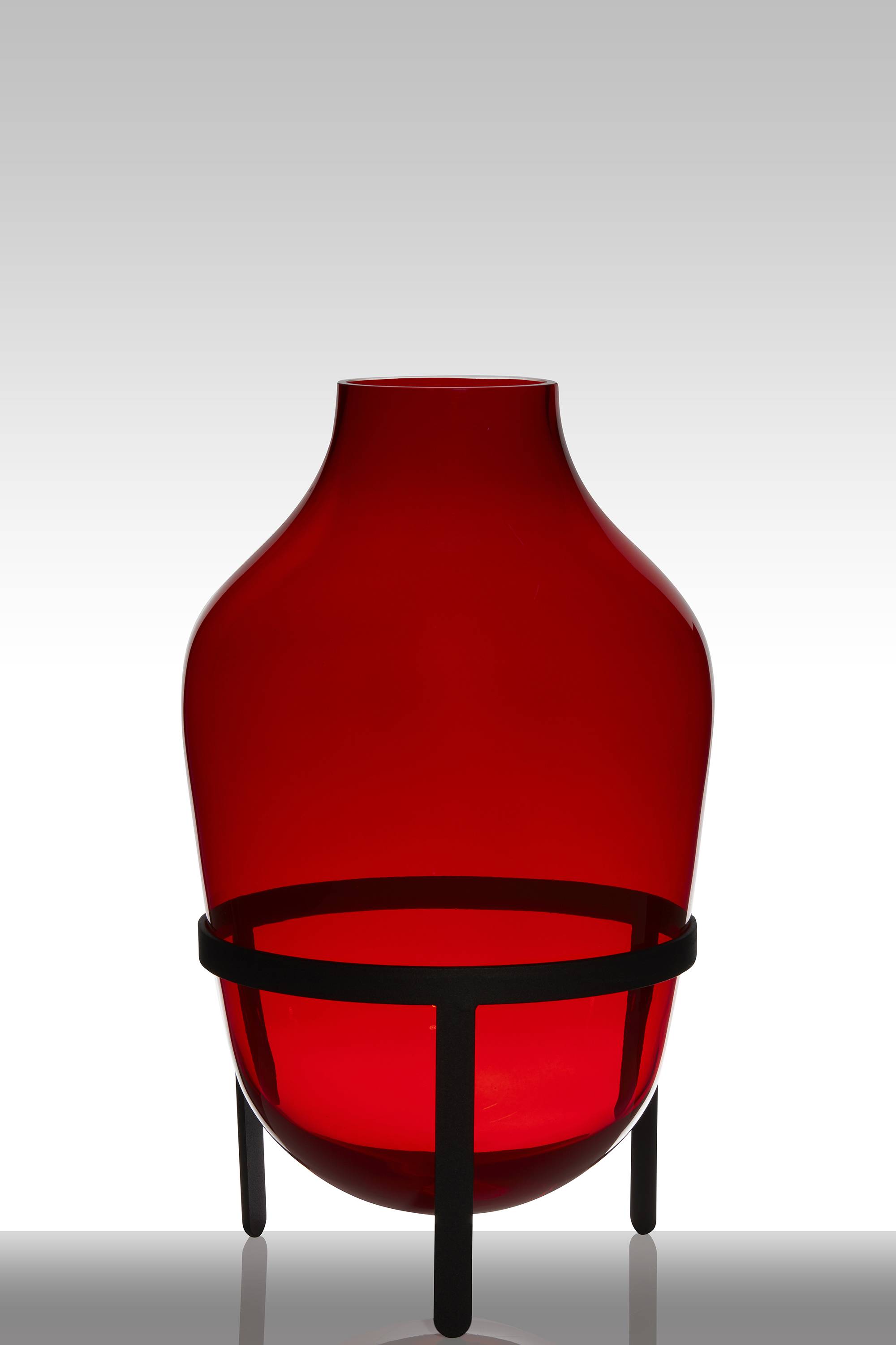 Vaso da pavimento in vetro CAMILO su piede, imbuto/rotondo, rosso, 50cm, Ø29cm