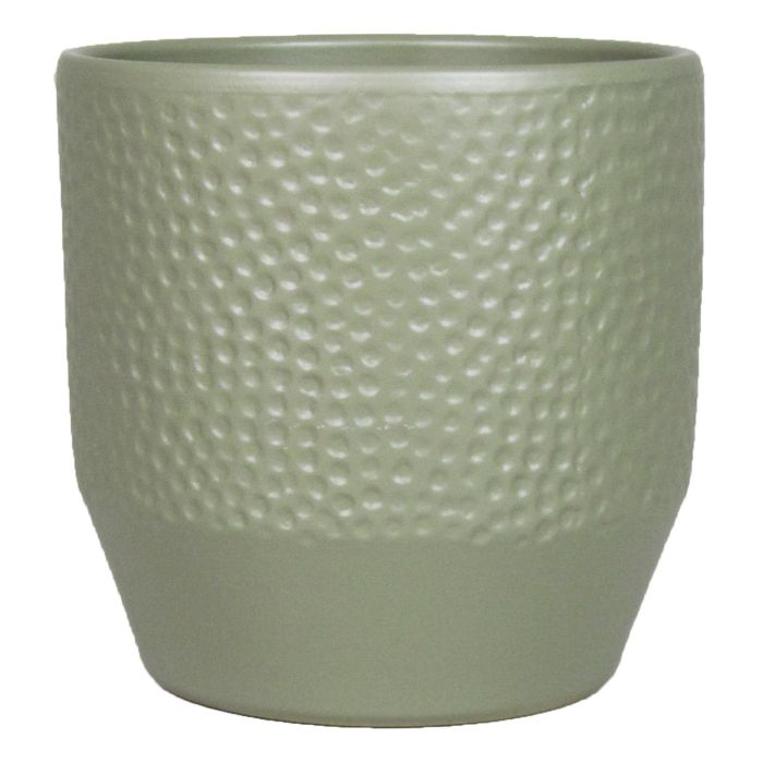 Vaso da piante BIHAM, ceramica, motivo martellato, verde oliva opaco, 13,2cm, Ø13,5cm