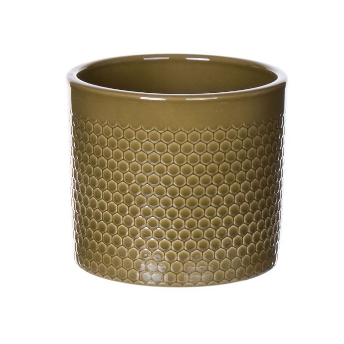 Vaso da piante in ceramica CINZIA, motivo a puntini, kaki, 12,3cm, Ø13,5cm