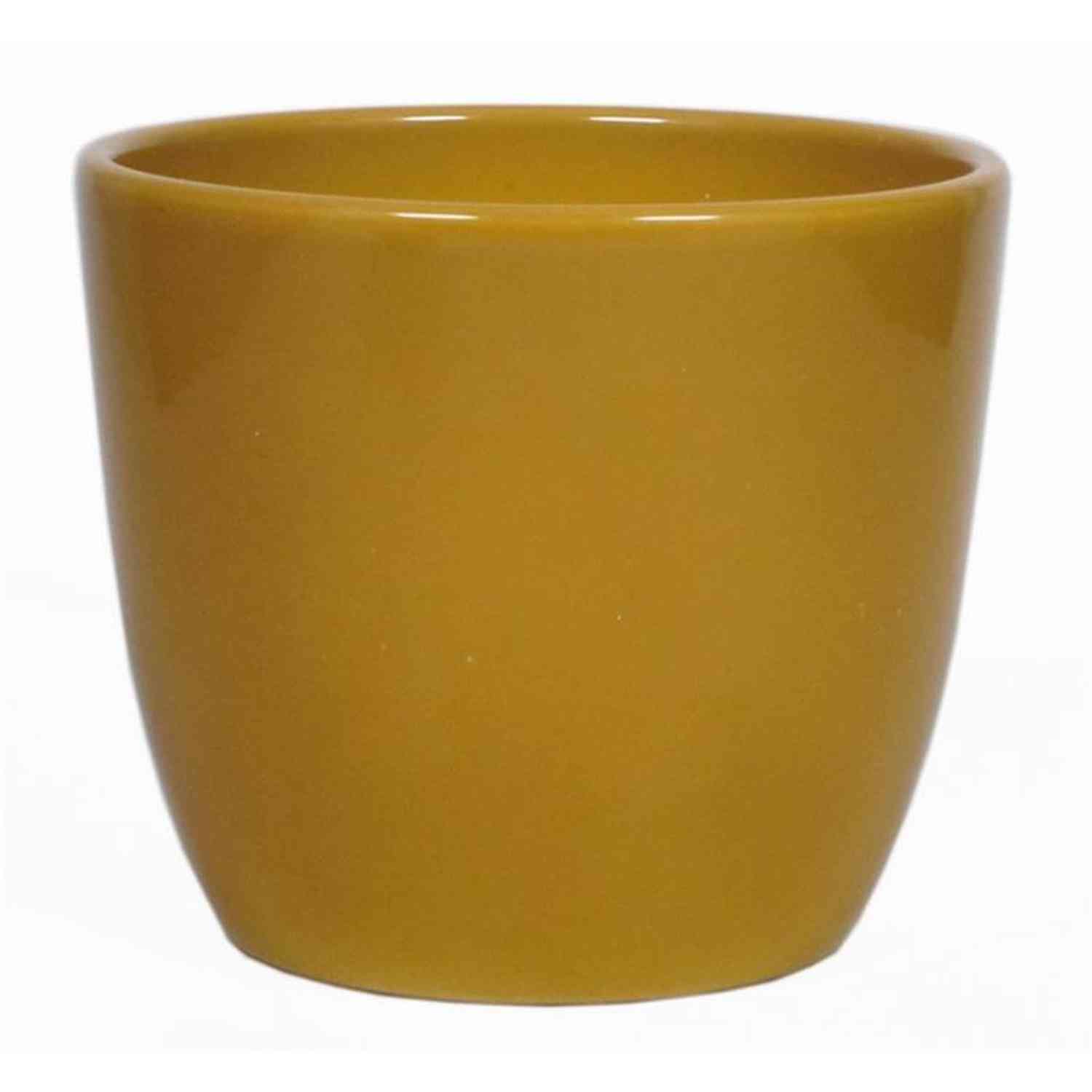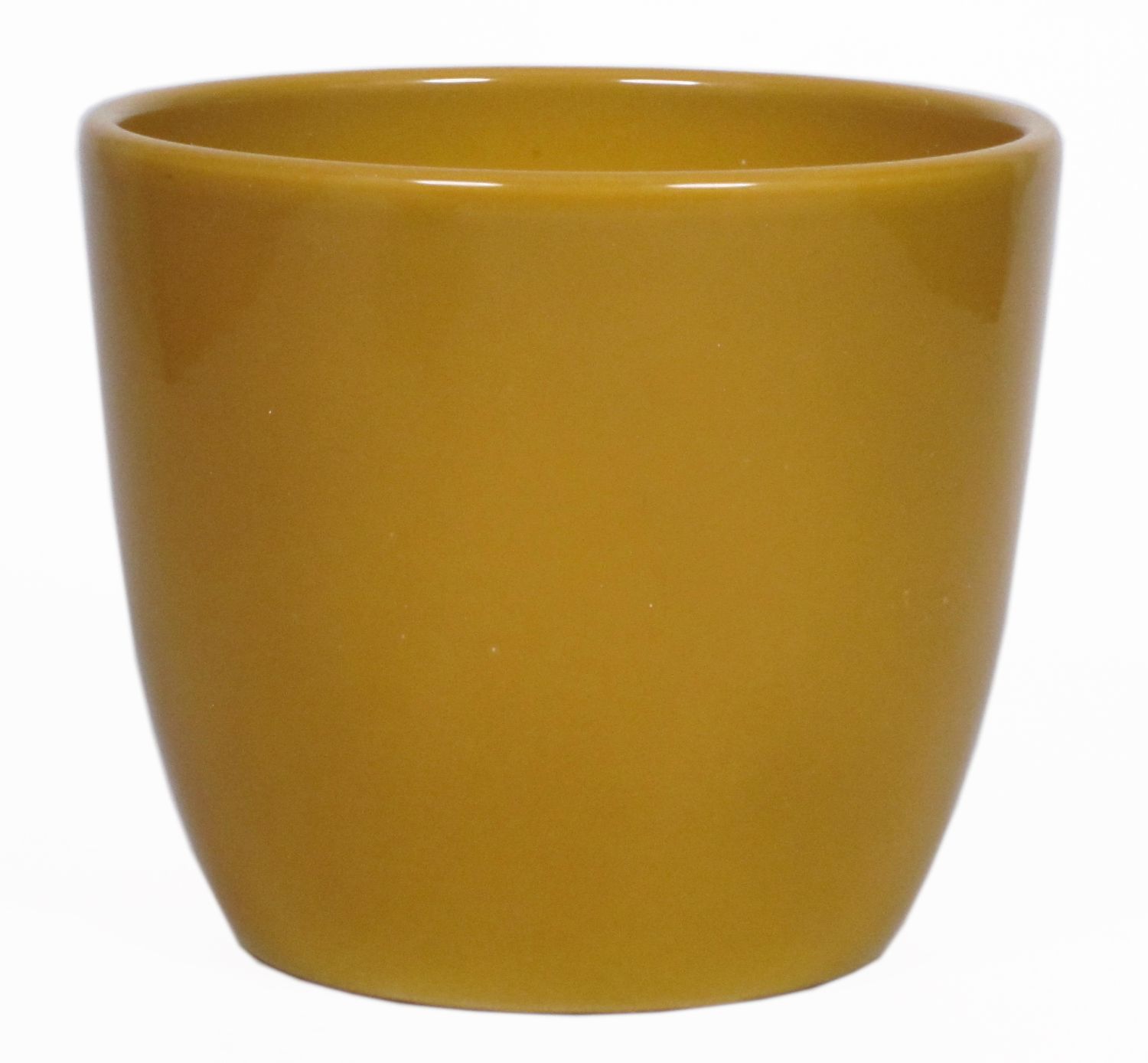 Fioriera TEHERAN BASAR in ceramica di colore giallo ocra con un diametro di ca. 17.5 cm e un'altezza di ca. 15 cm.