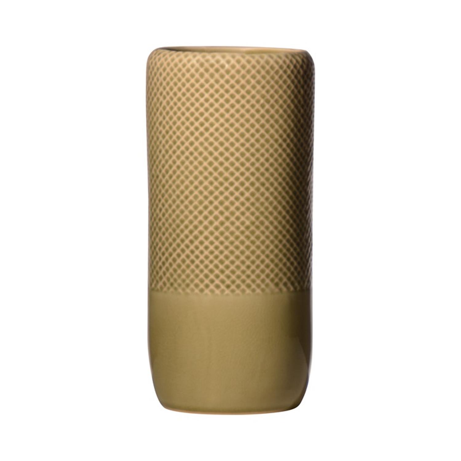 Vaso DANYLO in ceramica, motivo a rombi, verde-marrone, 28cm, Ø13cm