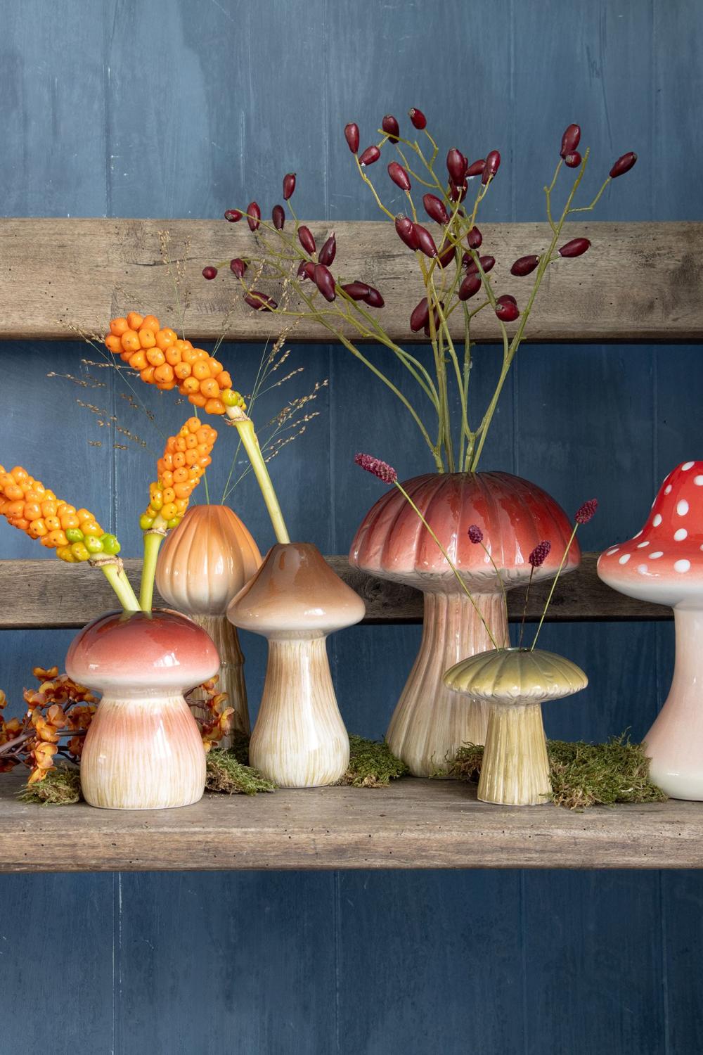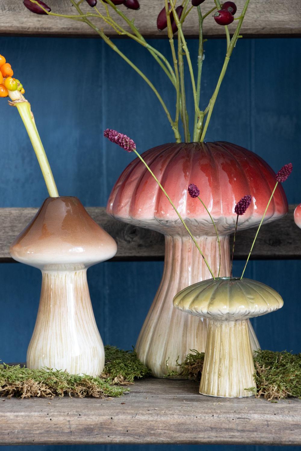 Vaso di ceramica ovolo malefico SEBALDE, scanalature, rosso-beige, 21cm, Ø16cm