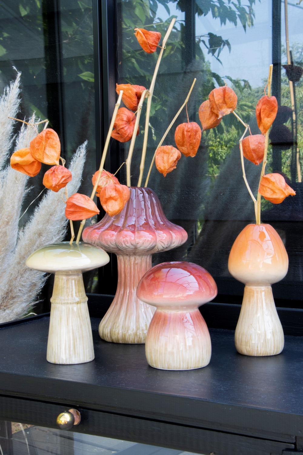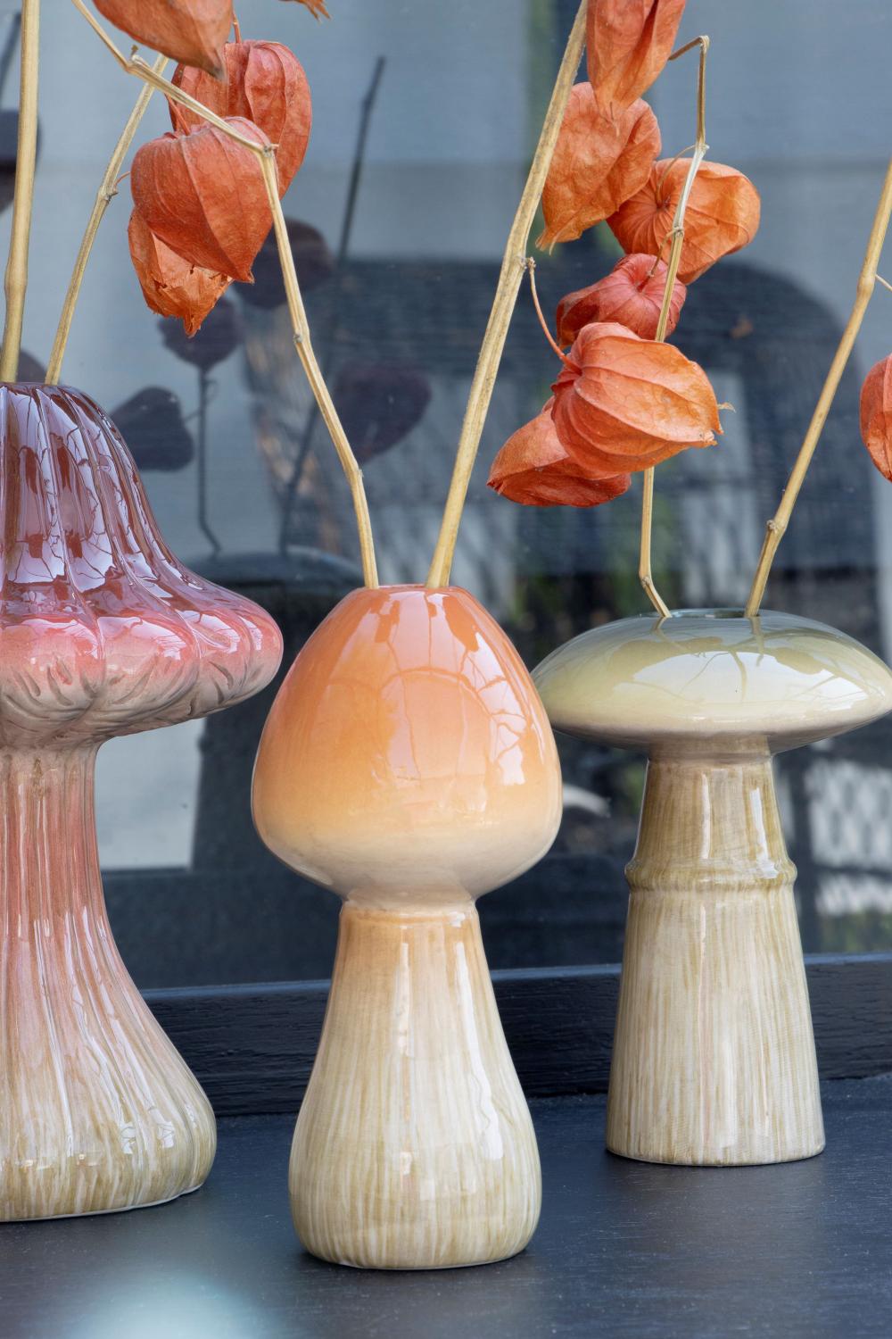 Vaso di fungo in ceramica RADOMILA, arancio-beige, 16cm, Ø7,5cm
