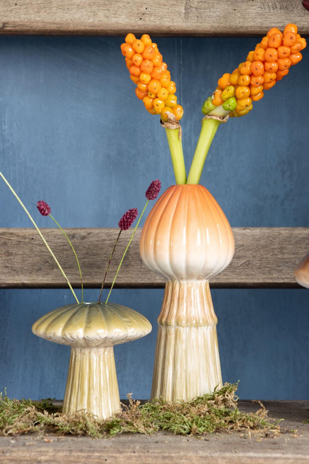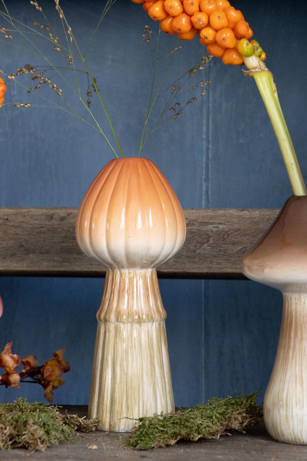 Vaso di fungo in ceramica RADOMILA, scanalature, arancione-beige, 18cm, Ø7,4cm