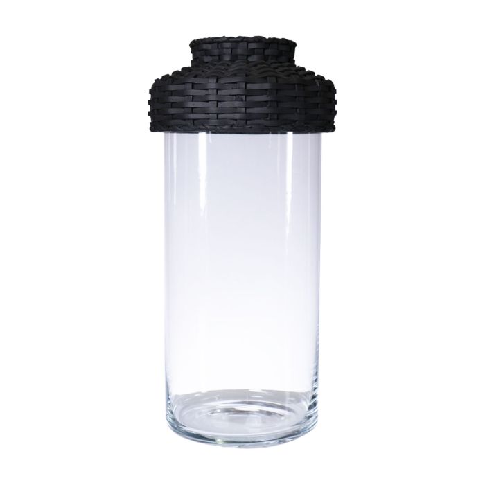 Vaso di vetro JINTANA con coperchio o piede in rattan, trasparente-nero, 45cm, Ø18,5cm
