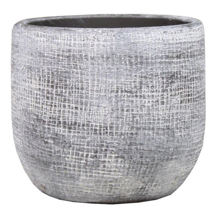 Vaso da piante AGAPE in ceramica di colore grigio cemento con un diametro di ca. 39 cm e un'altezza di ca. 36 cm.