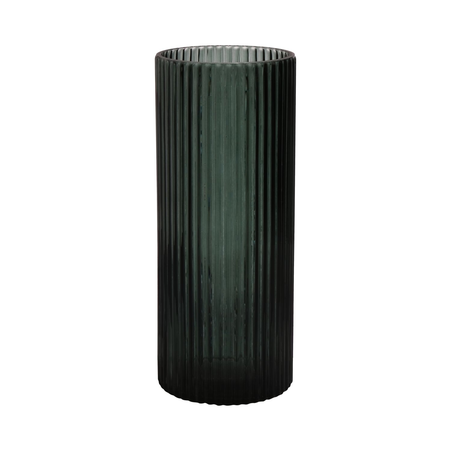 Vaso moderno in vetro SORCHA con scanalature, verde bosco-trasparente, 30cm, Ø12,5cm