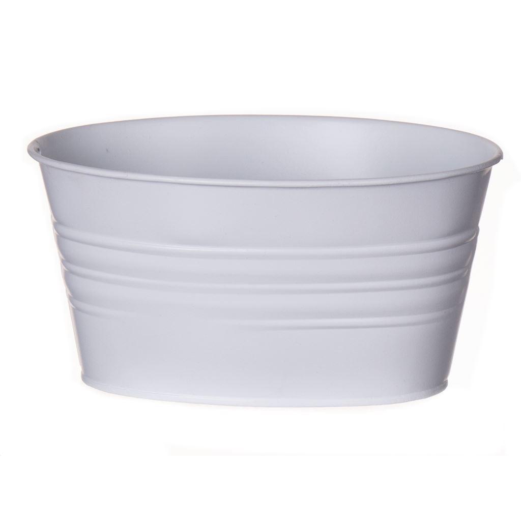 Vaso ovale in zinco MICOLATO con scanalature, bianco, 19x13,5x10cm