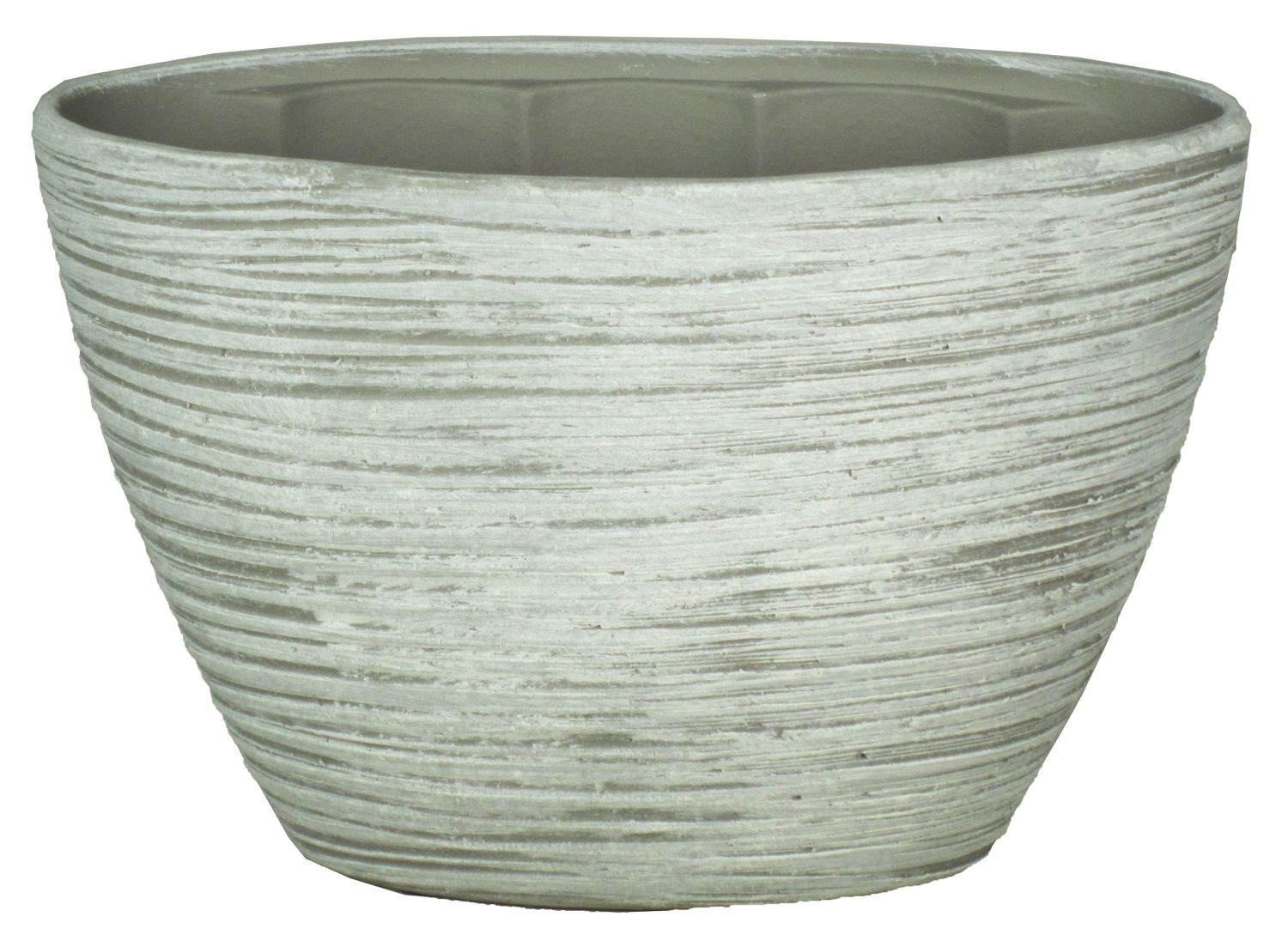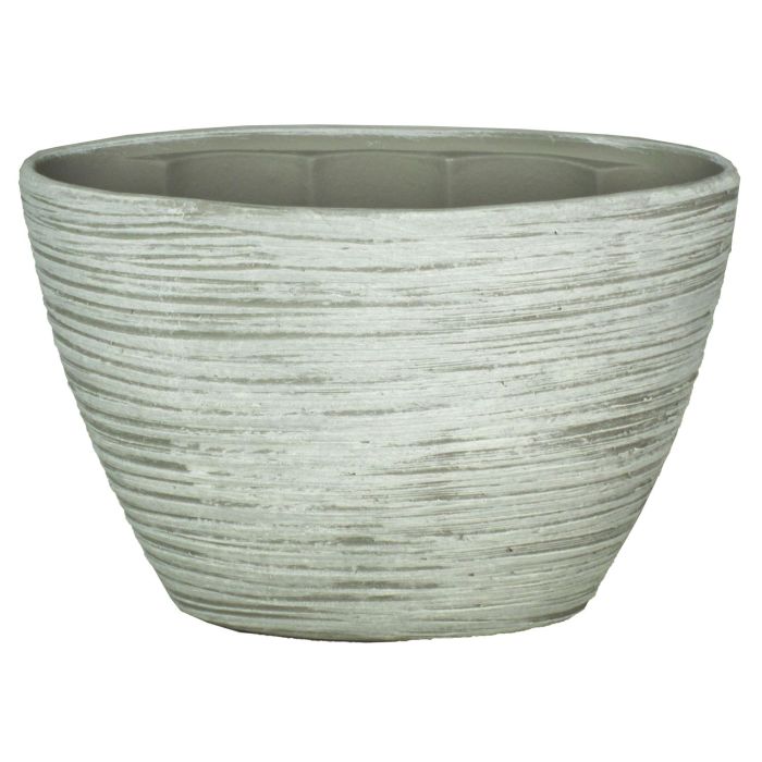 Vaso per piante ADELPHOS in ceramica di colore bianco-grigio chiaro con una lunghezza di ca. 32 cm e un'altezza di ca. 22,5 cm.