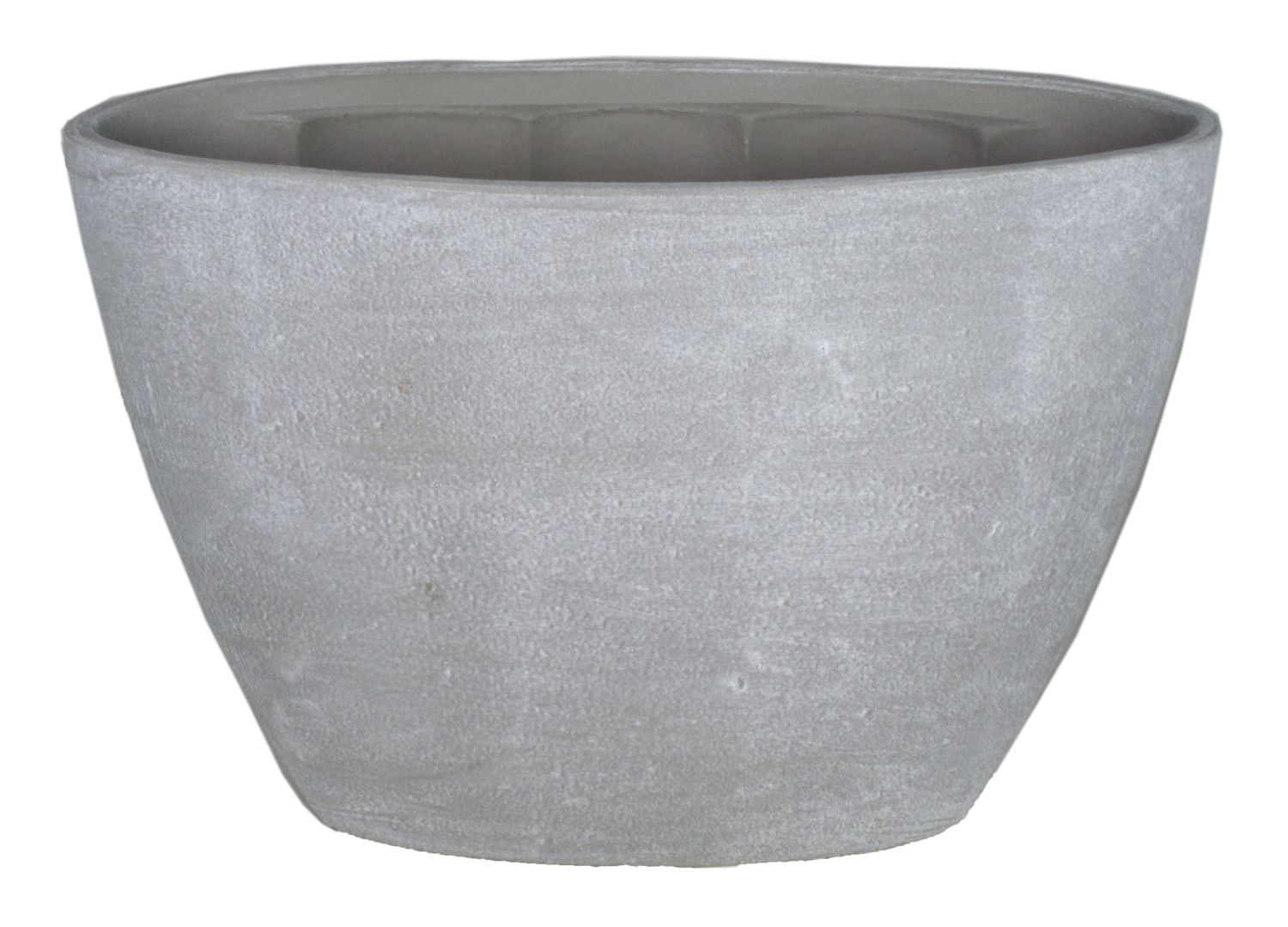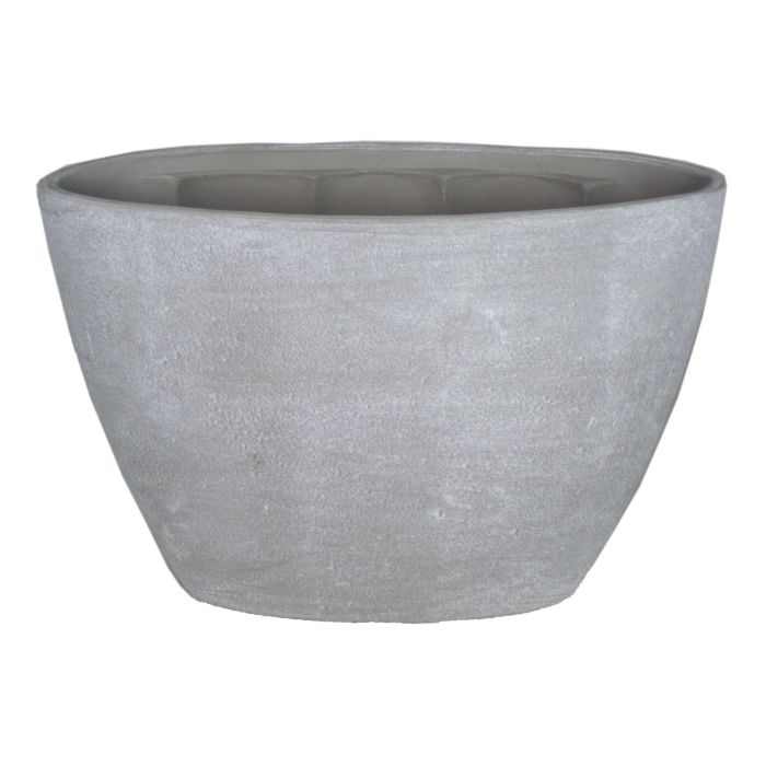 Vaso per piante RODISA in ceramica di colore grigio cemento con una lunghezza di ca. 32 cm e un'altezza di ca. 22,5 cm.
