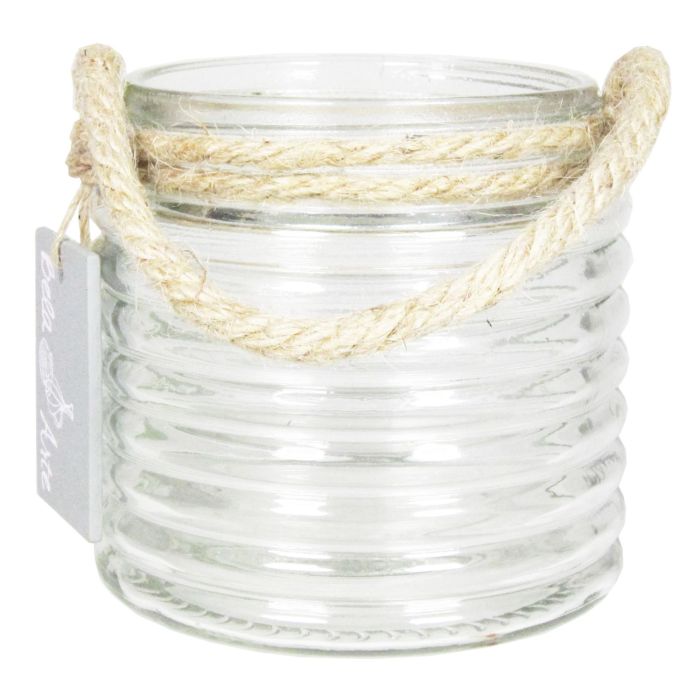 Vaso per candele KIAH con manico, scanalature, 9,5cm, Ø9cm
