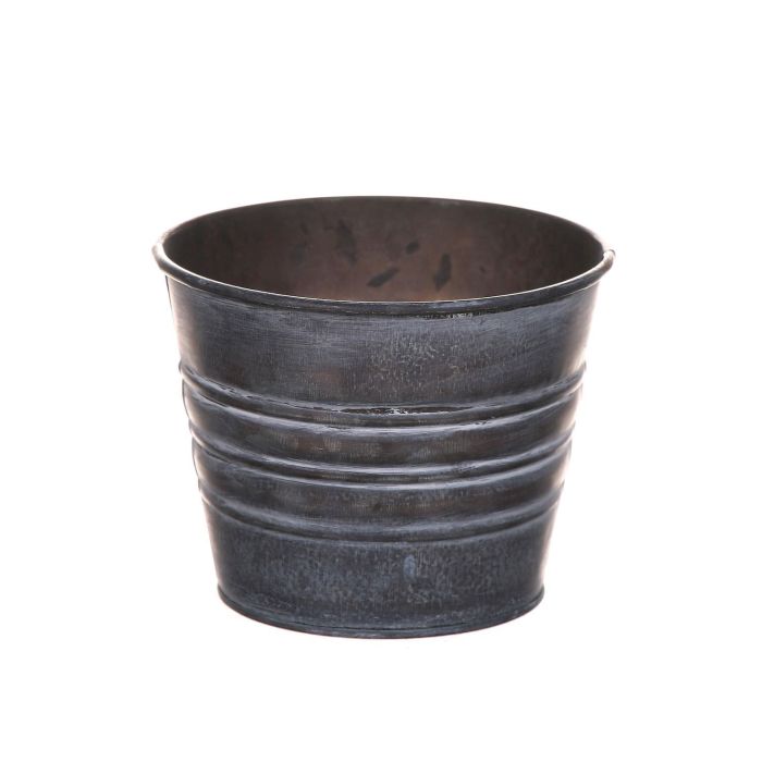 Vaso rotondo MICOLATO con scanalature, zinco, grigio, 9cm, Ø11,5cm