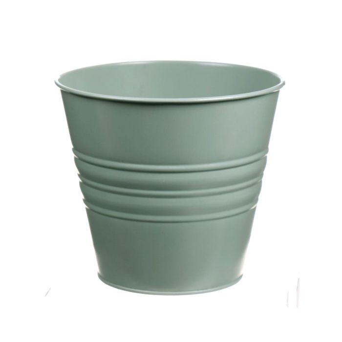 Vaso rotondo MICOLATO con scanalature, zinco, verde giada, 13cm, Ø15,5cm