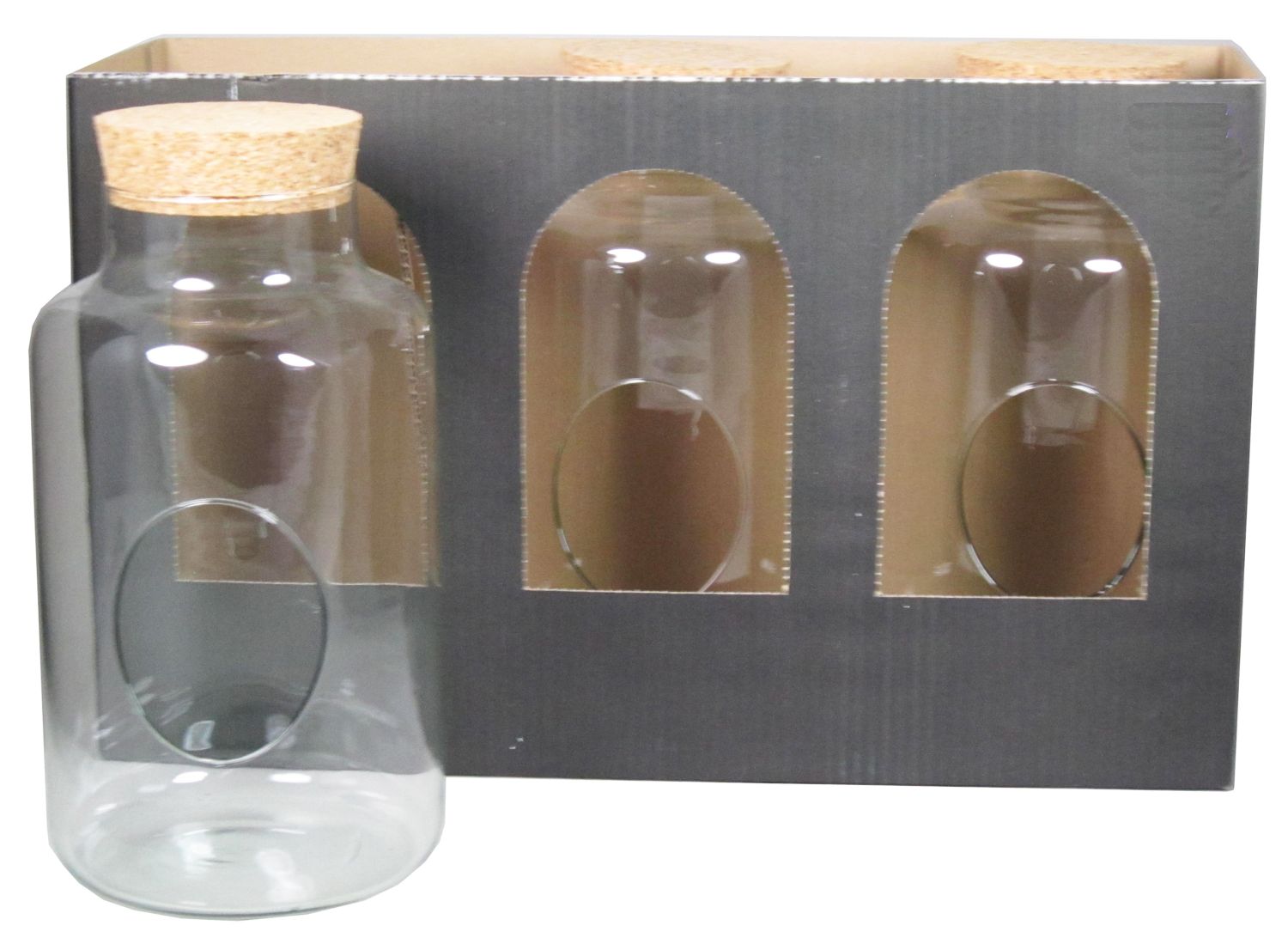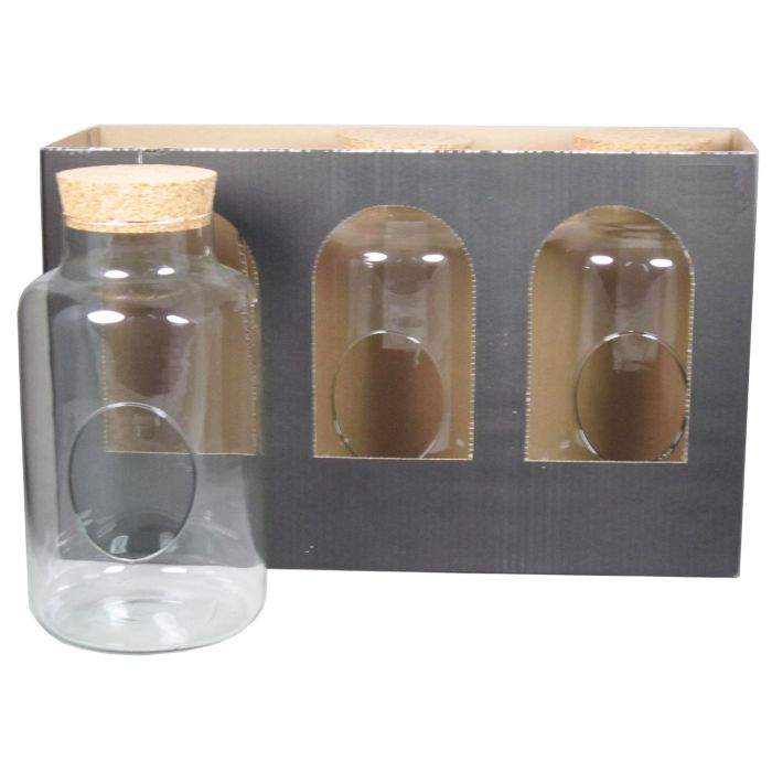 Vaso terrario di vetro DONELL con coperchio di sughero, 3 pezzi, trasparente, 30cm, Ø17cm