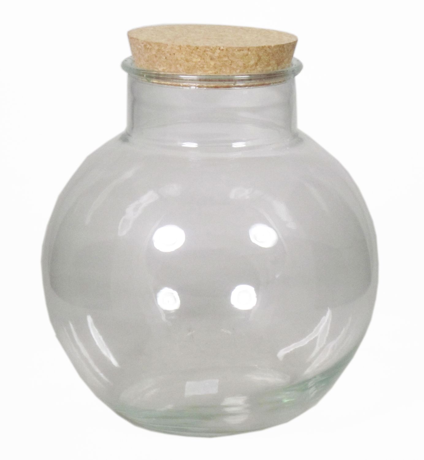 Il barattolo per caramelle WINDA ha una forma sferica e un coperchio di sughero per una migliore conservazione degli alimenti.